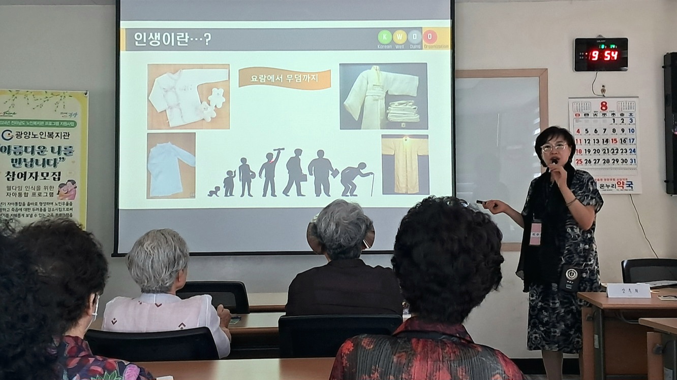 이번 프로그램은 ‘2024년 전라남도 노인복지관 프로그램’ 공모에 선정된「웰다잉 인식을 위한 자아통합」 프로그램 중 하나로, 광양노인복지관에서는 ‘웰다잉 인식 교육’을 통해 삶의 의미를 살피고 아름다운 마무리를 의미하는 맞이하는 죽음을 교육한다.