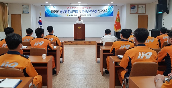 [해륙뉴스1]=보성소방서(서장 정대원)는 8일 본서 3층 회의실에서 70여명의 직원이 참석한 가운데 공무원 범죄 예방 및 정신건강 증진을 위한 직장교육을 실시했다.