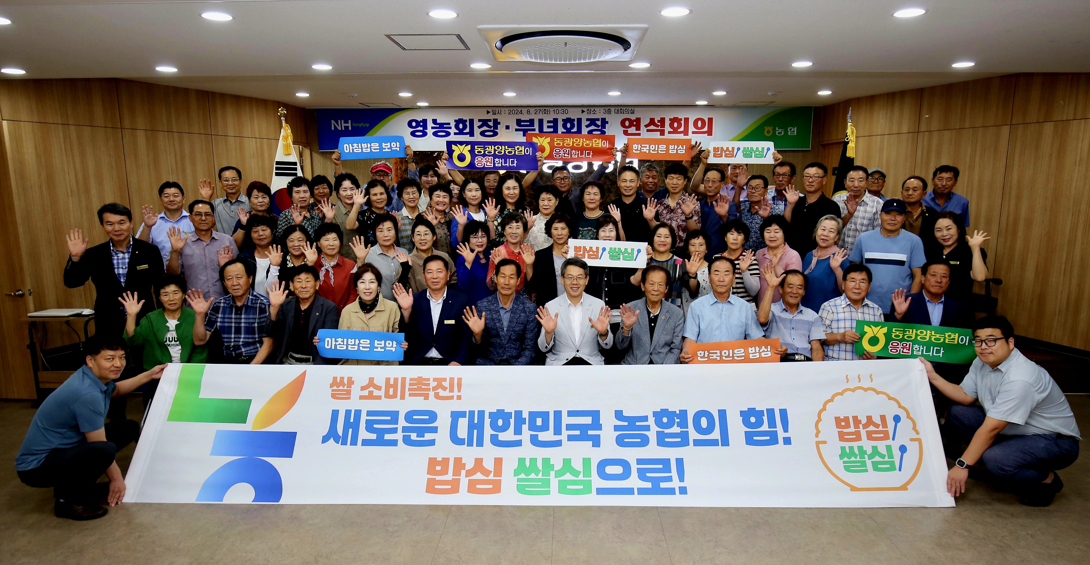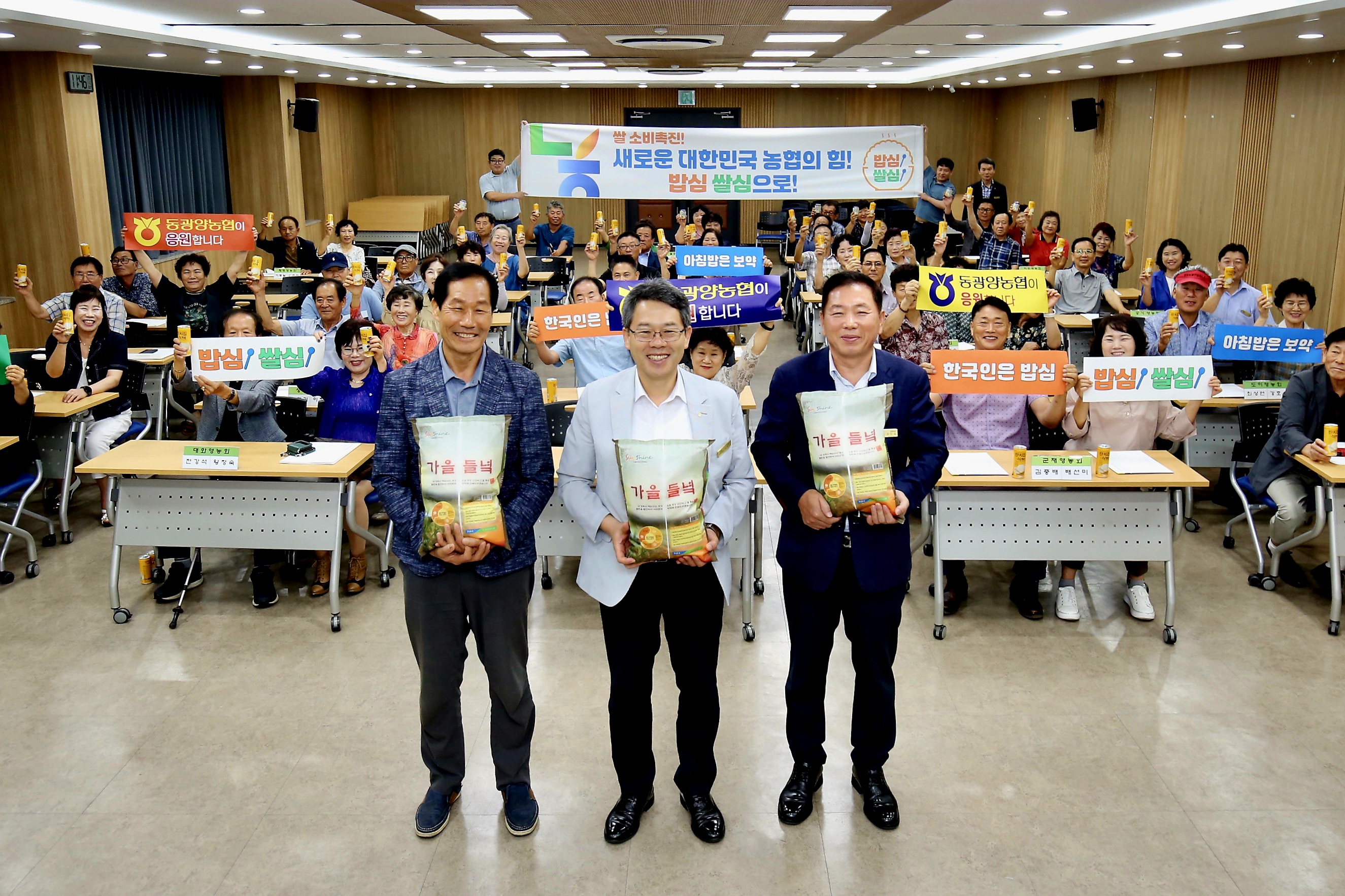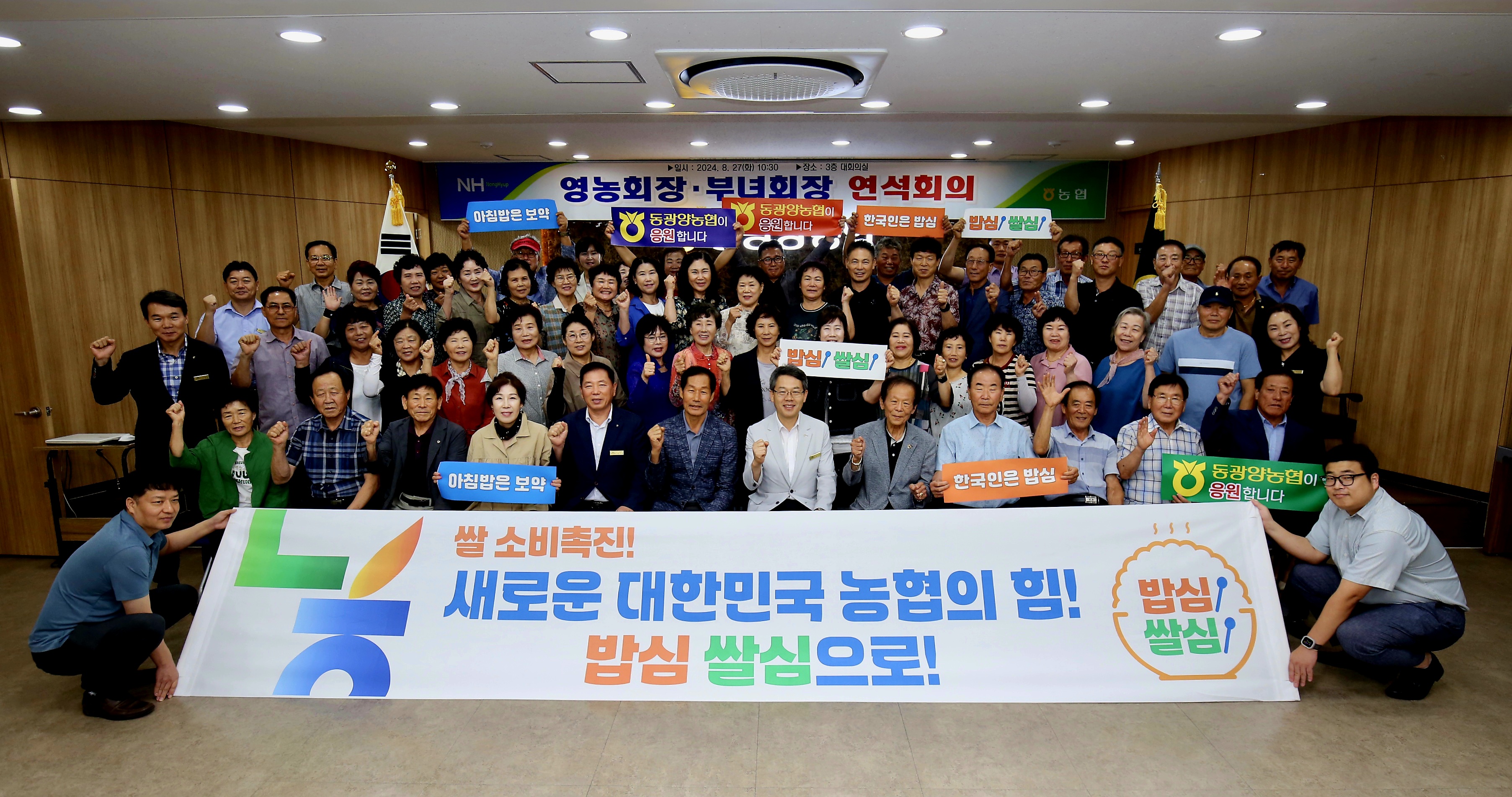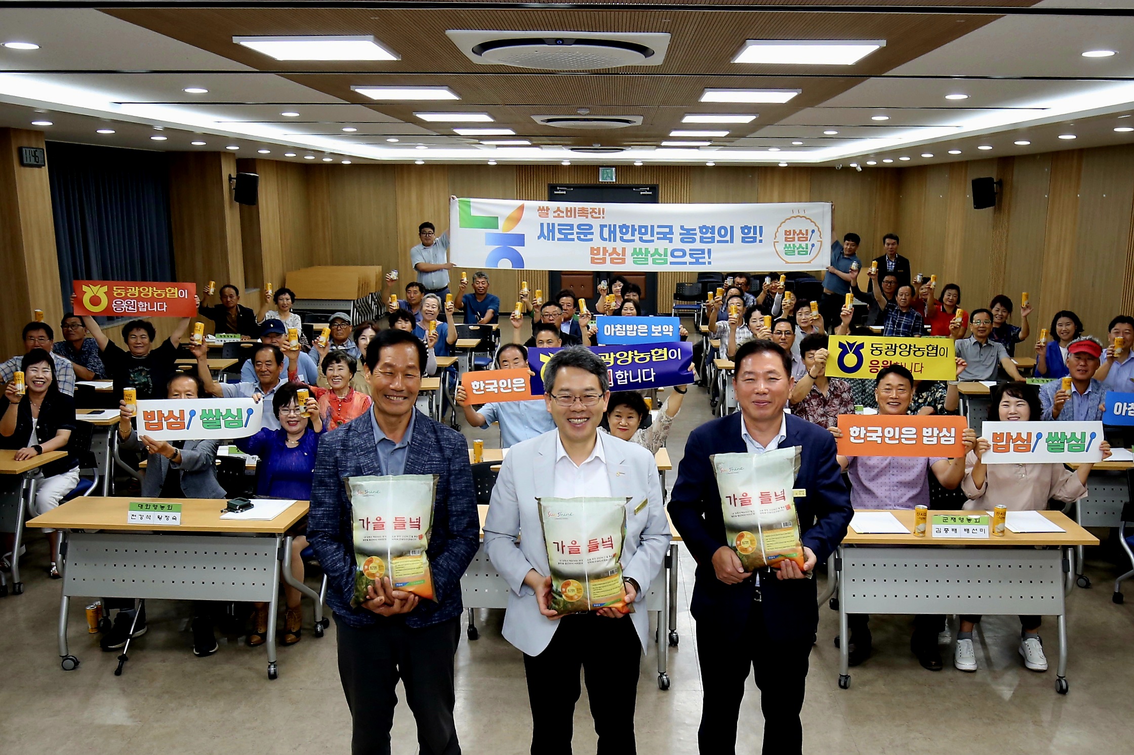 동광양농협(조합장 이돈성)이 27일 본점 3층 대회의실에서 임직원과 영농회장, 부녀회장 70여명이 쌀 소비 촉진을 위한 ‘밥심! 쌀심! 아침밥 먹기’ 캠페인을 진행했다.
