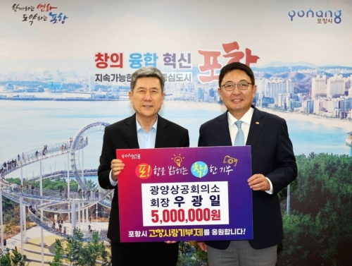 광양상공회의소 우광일 회장이 8월 28일(수) 포항시청을 방문해 고향사랑기부금 개인 최고한도액 500만원을 ...