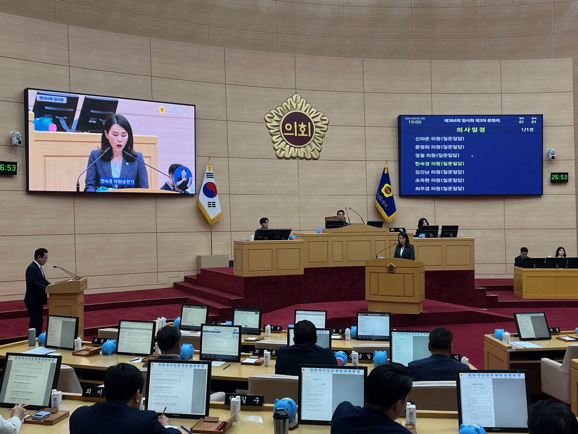 전남도의회 한숙경 의원(더불어민주당ㆍ순천7)은 5일 전남도의회 제384회 임시회에서 도정질문을 통해 순천 신...