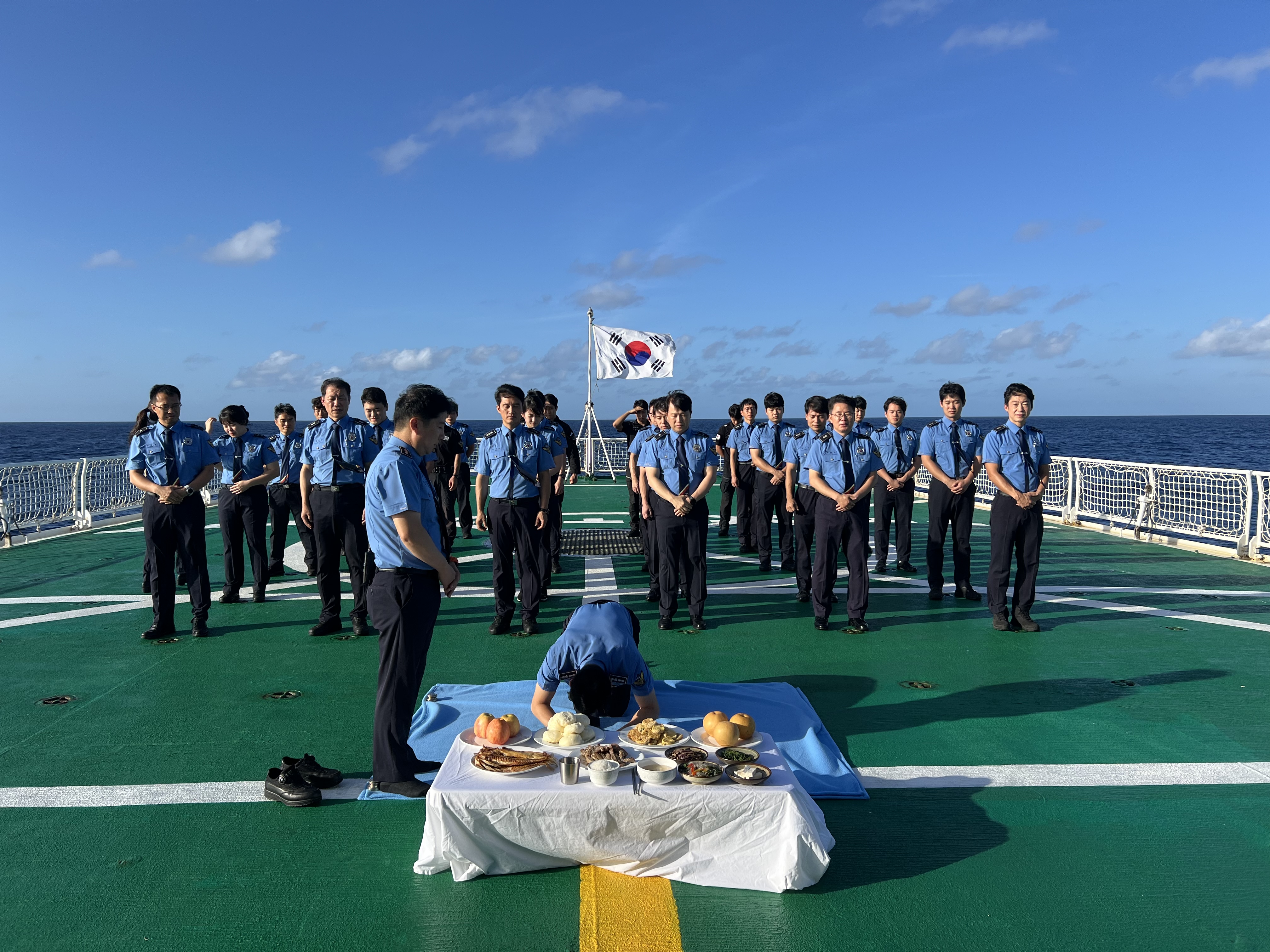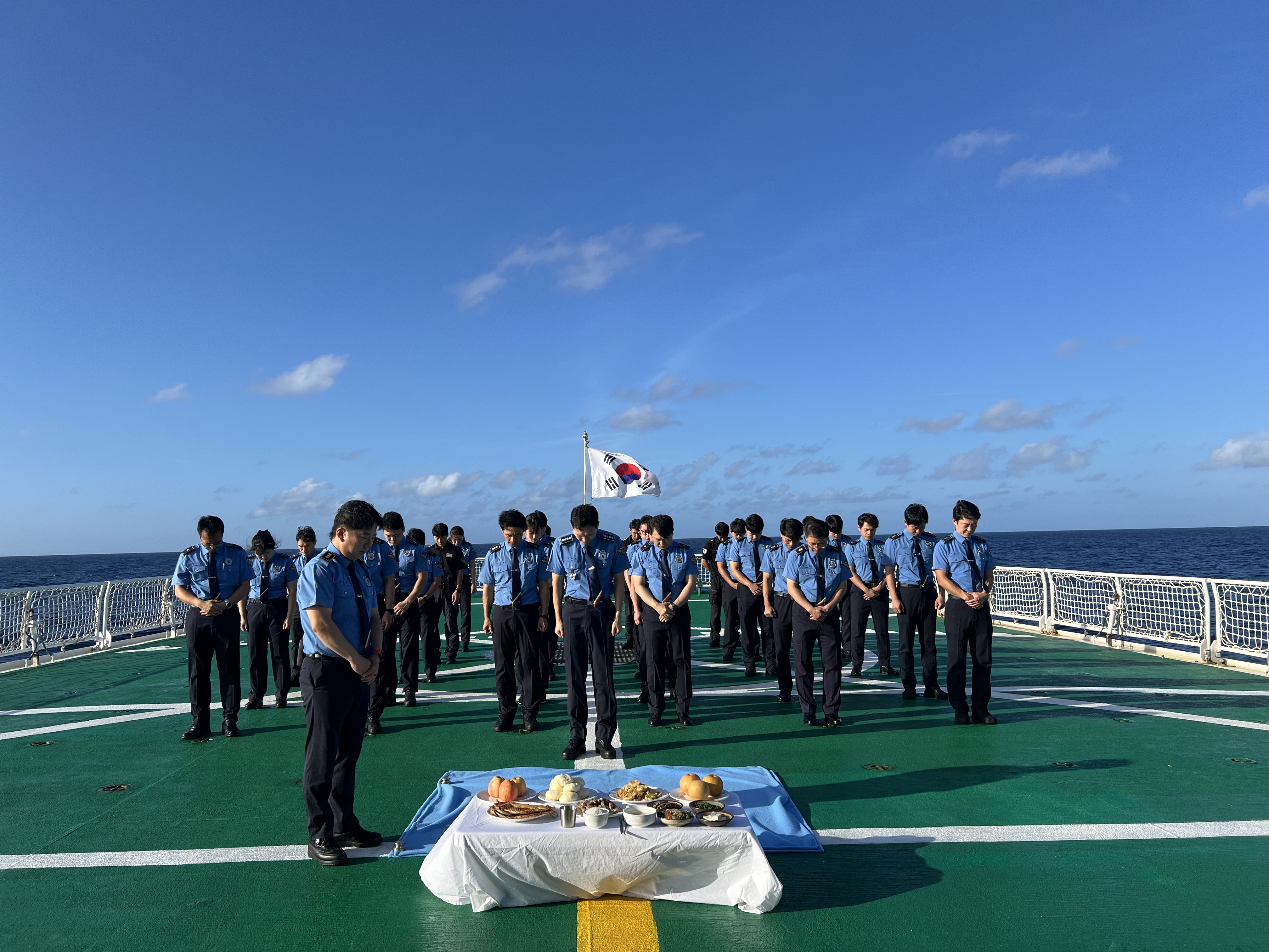 신경진 5002함 함장은 “비록 바다 위에서 차례를 지내지만, 국민의 안전을 지키는 것이 해양경찰의 최우선 임무”라며, 맡은 바 임무에 최선을 다하겠다“고 말했다.