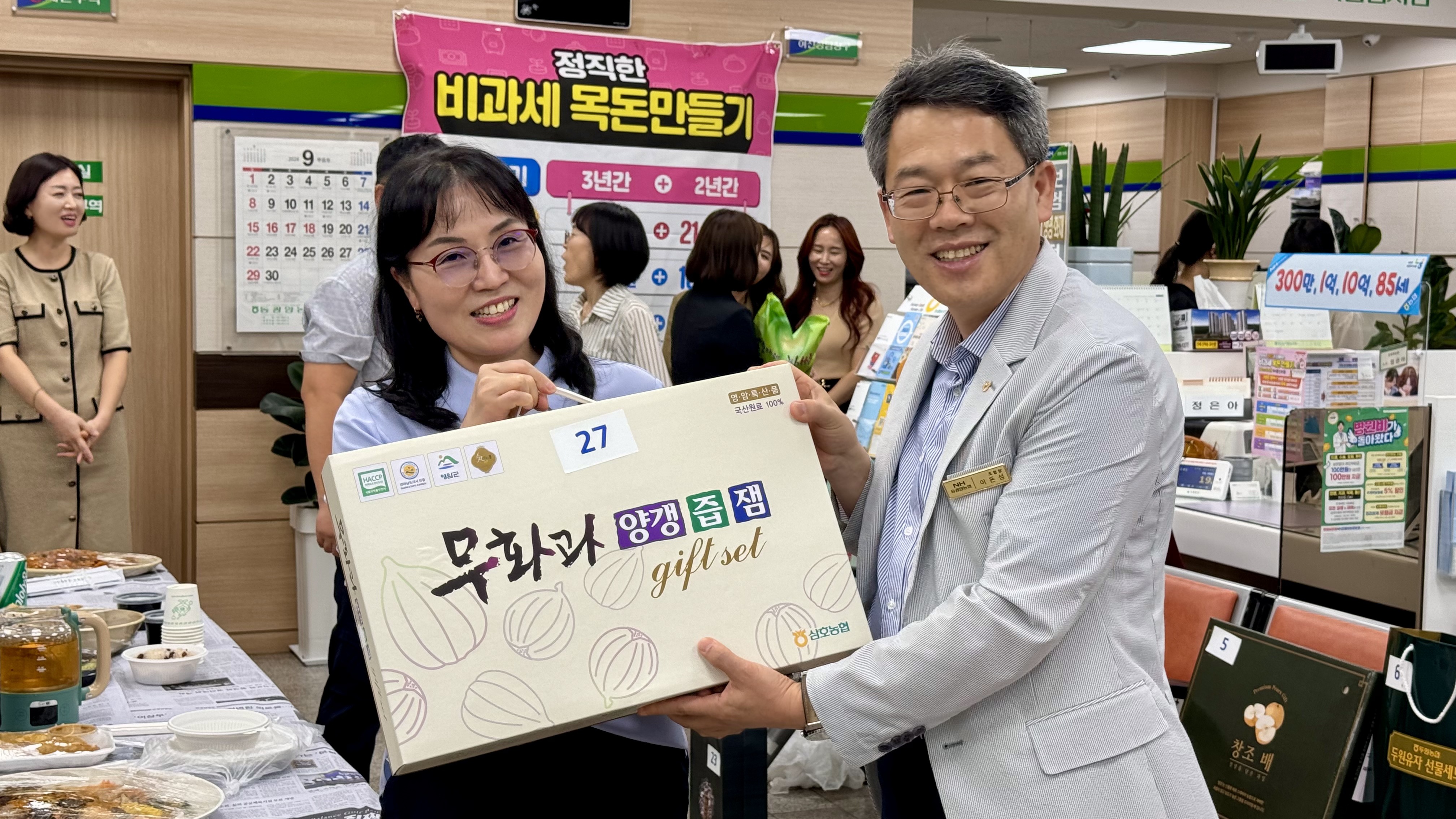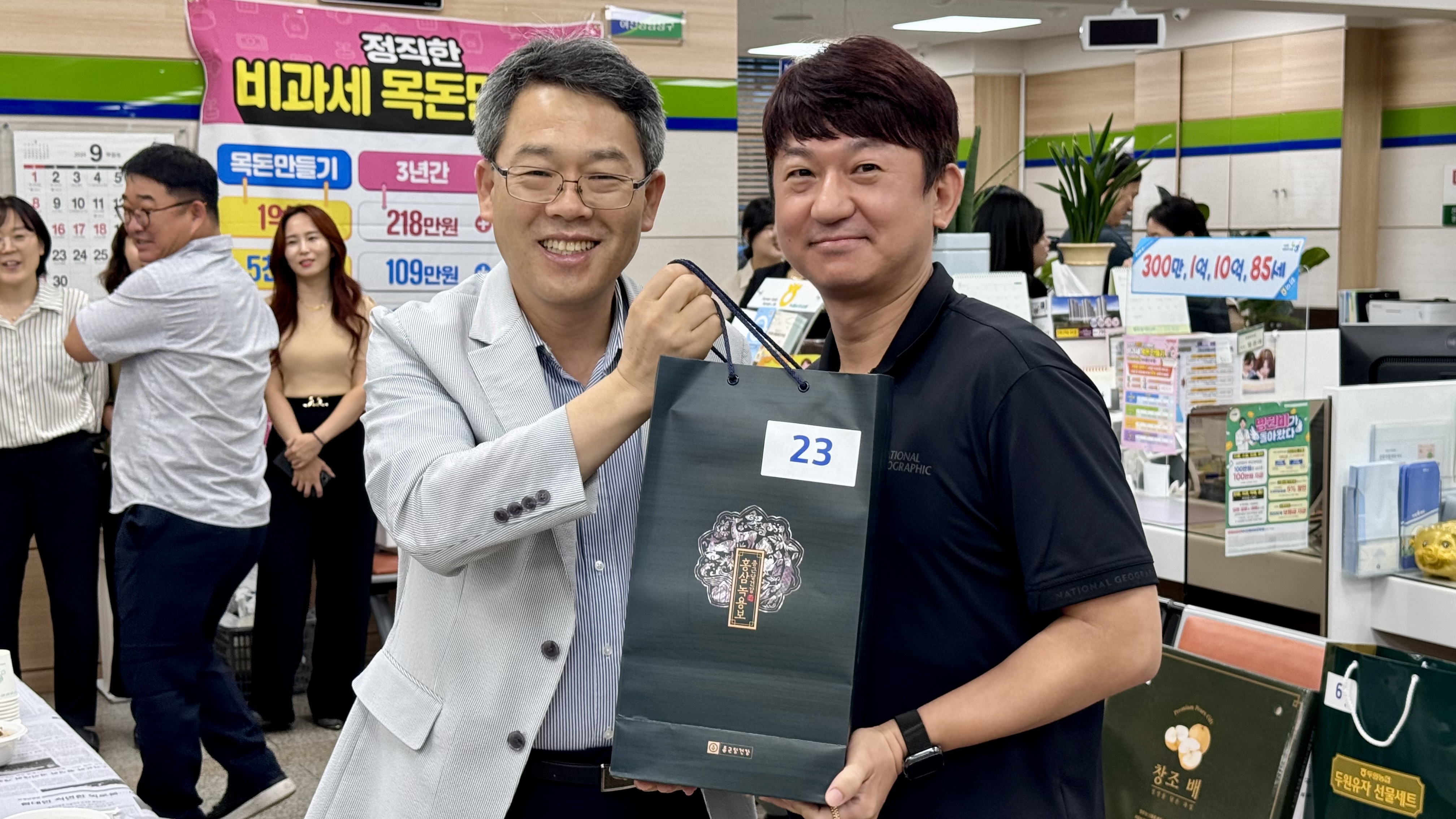 동광양농협 조합장 이돈성은 조합장명으로 배송된 추석 명절 선물을 본점 직원 31명에게 추첨을 통해 나눔 행사를 펼쳤다.