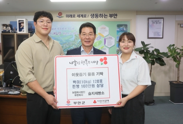 권익현 부안군수는 “어려운 이웃을 위해 나눔을 실천해 주신 슬지제빵소에 진심으로 감사드린다”며, “기탁해주신 백미와 찐빵은 도움이 필요한 이웃들에게 소중히 전달하겠다”고 말했다.