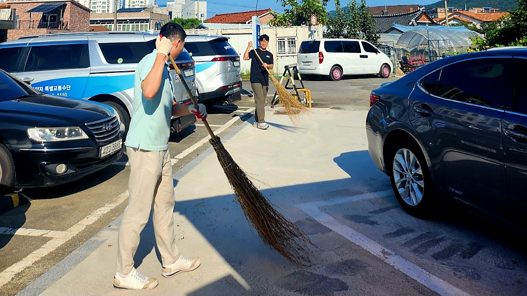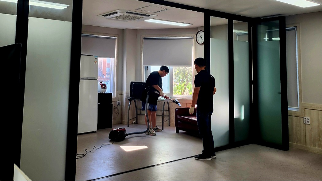 이 날 봉사활동은 윤정천봉사단장이 청소 물품을 제공, 봉사활동 계획을 세웠으며 직원 및 회원들의 생활환경 개선을 위해 사무실과 화장실, 교육실, 휴게실, 주방, 쉼터 등을 물청소와 왁스 작업으로 마무리 하여 위생적이고 깨끗한 환경을 조성하였으며 출입구와 건물외관 거미줄 제거와 사무실 외부 바닥까지 말끔하게 청소를 해 주었다.