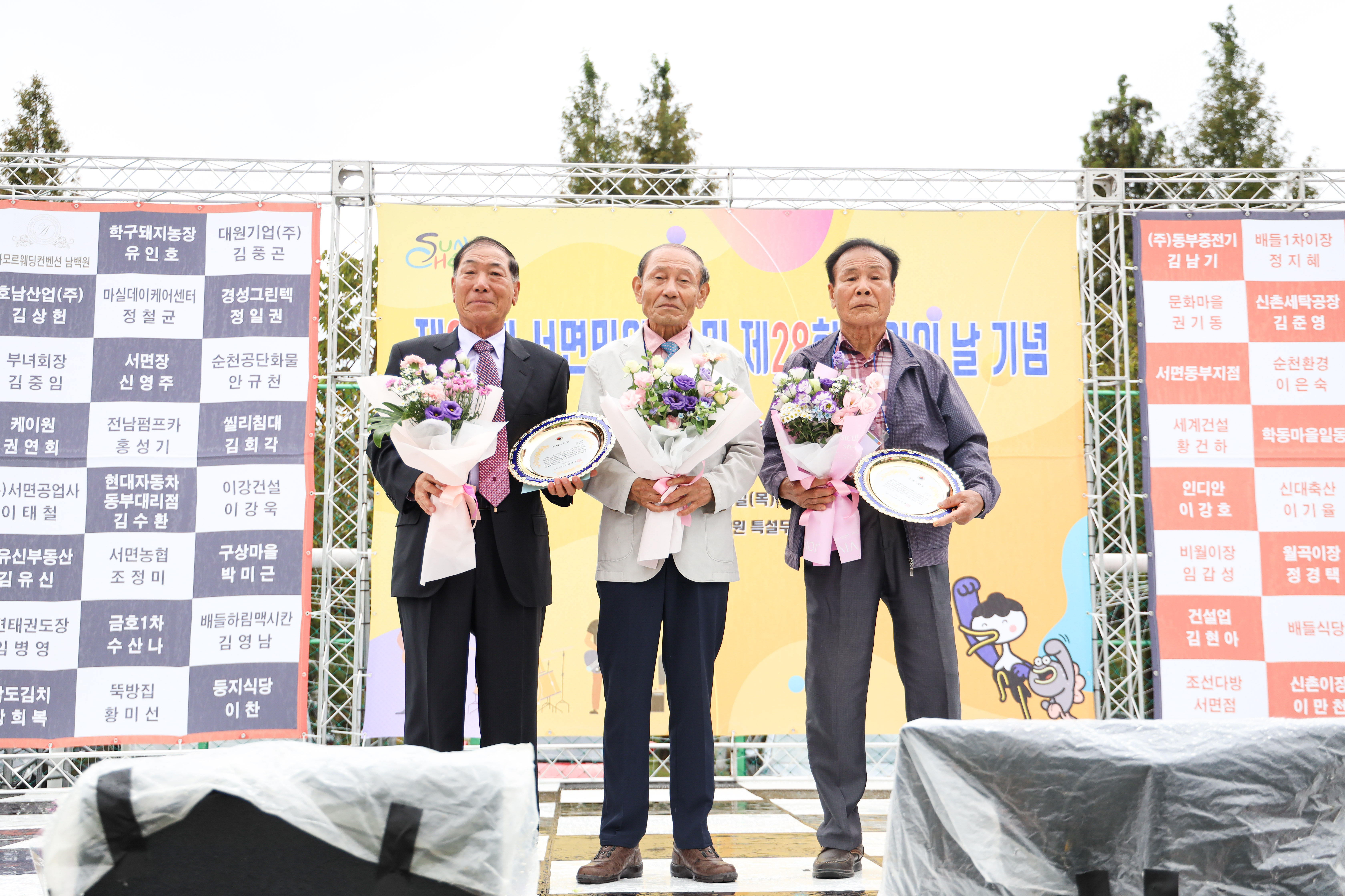 기념식에서는 지역 발전을 위해 헌신하고 봉사한 분들에게 면민의 상, 공로상, 모범노인상 등의 표창이 수여되었으며, 면민헌장과 노인강령 낭독도 진행됐다.