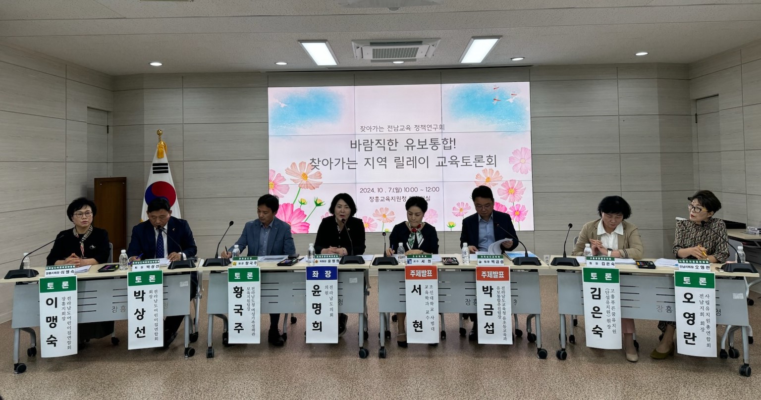 전라남도의회 ‘찾아가는 전남교육 정책연구회’ 대표의원 박경미 의원은 지난 10월 7일에 장흥교육지원청 대회의실에서 유보통합을 주제로 토론회를 개최했다.