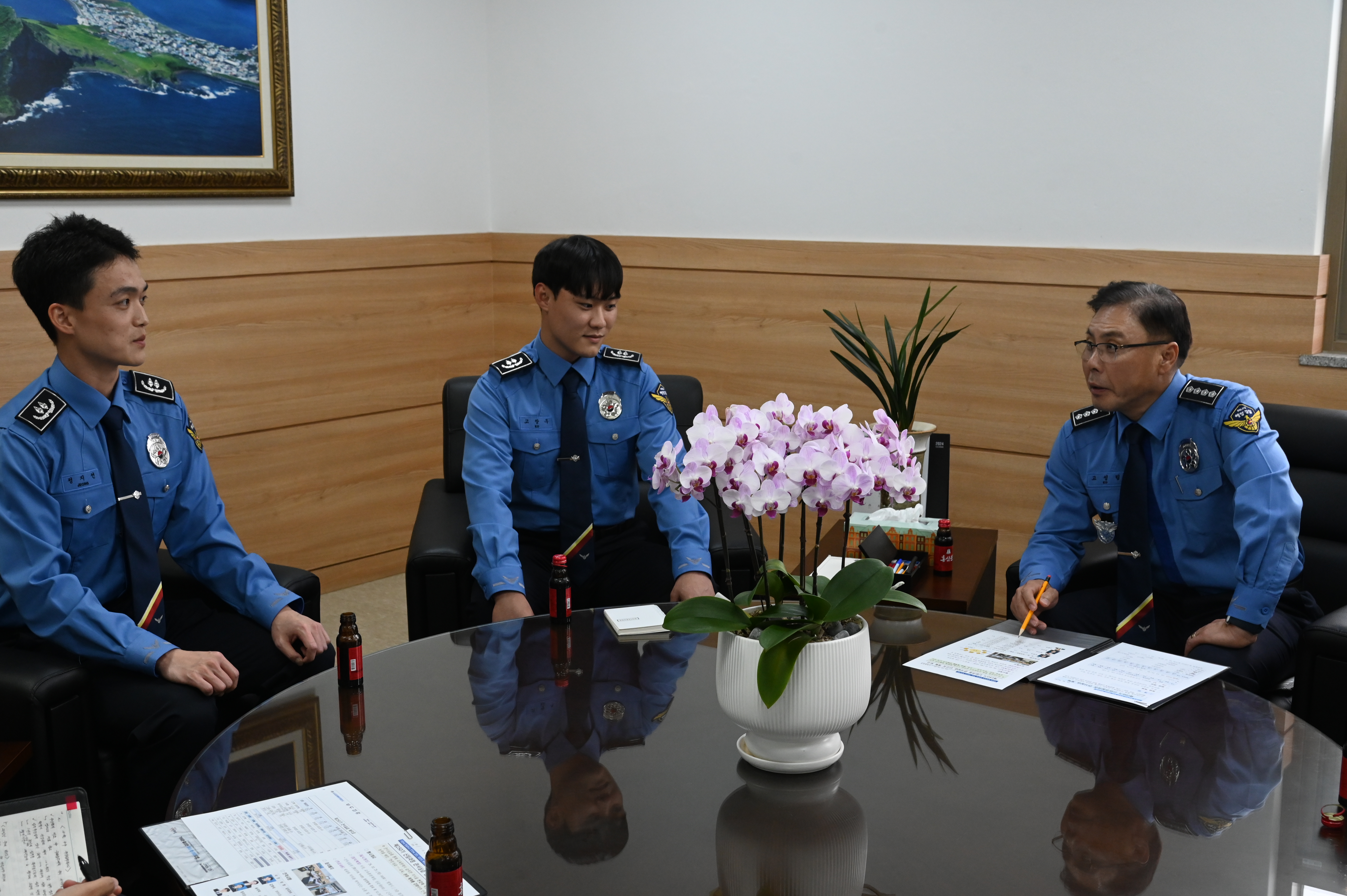 서귀포해양경찰서(서장 고성림)는 오늘(21일)부터 12주 간 제250기 신임경찰과정 교육생 6명을 대상으로 해양경찰의 실무 경험을 쌓고 현장 대응 능력을 강화하기 위해 경찰서를 시작으로 경비함정 및 파출소 등 현장 관서 실습에 나선다고 밝혔다.