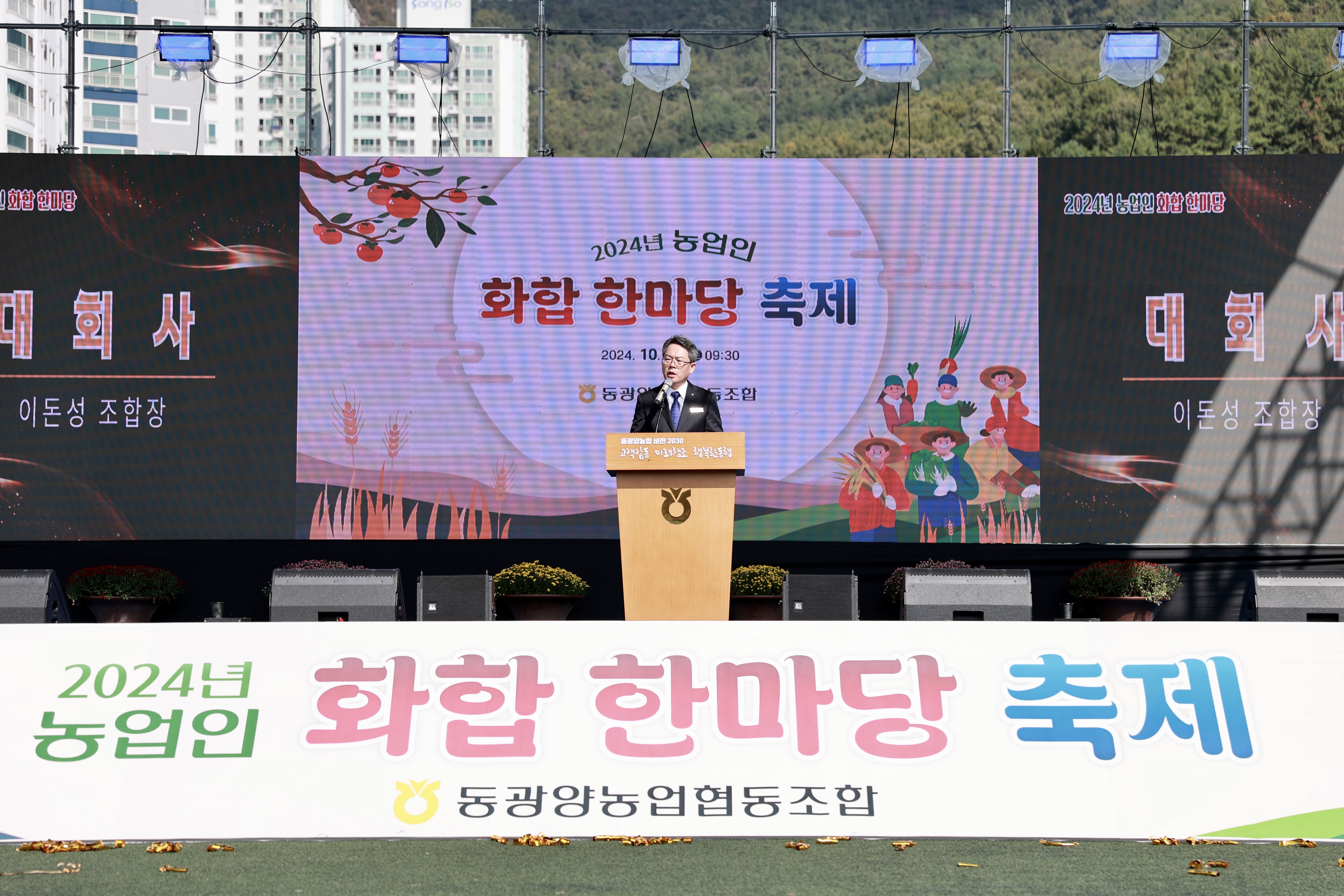 강호동 중앙회장은 영상 메시지를 통해 “동광양농협은 조합원의 경제적·사회적 지위향상을 위해 본연의 역할을 다하고 있다”며, “이돈성 조합장 취임 이후 탁월한 추진력과 열정을 바탕으로 내실 있는 도시농협의 입지를 공고히 다지고 있다”고 축사를 전했다.