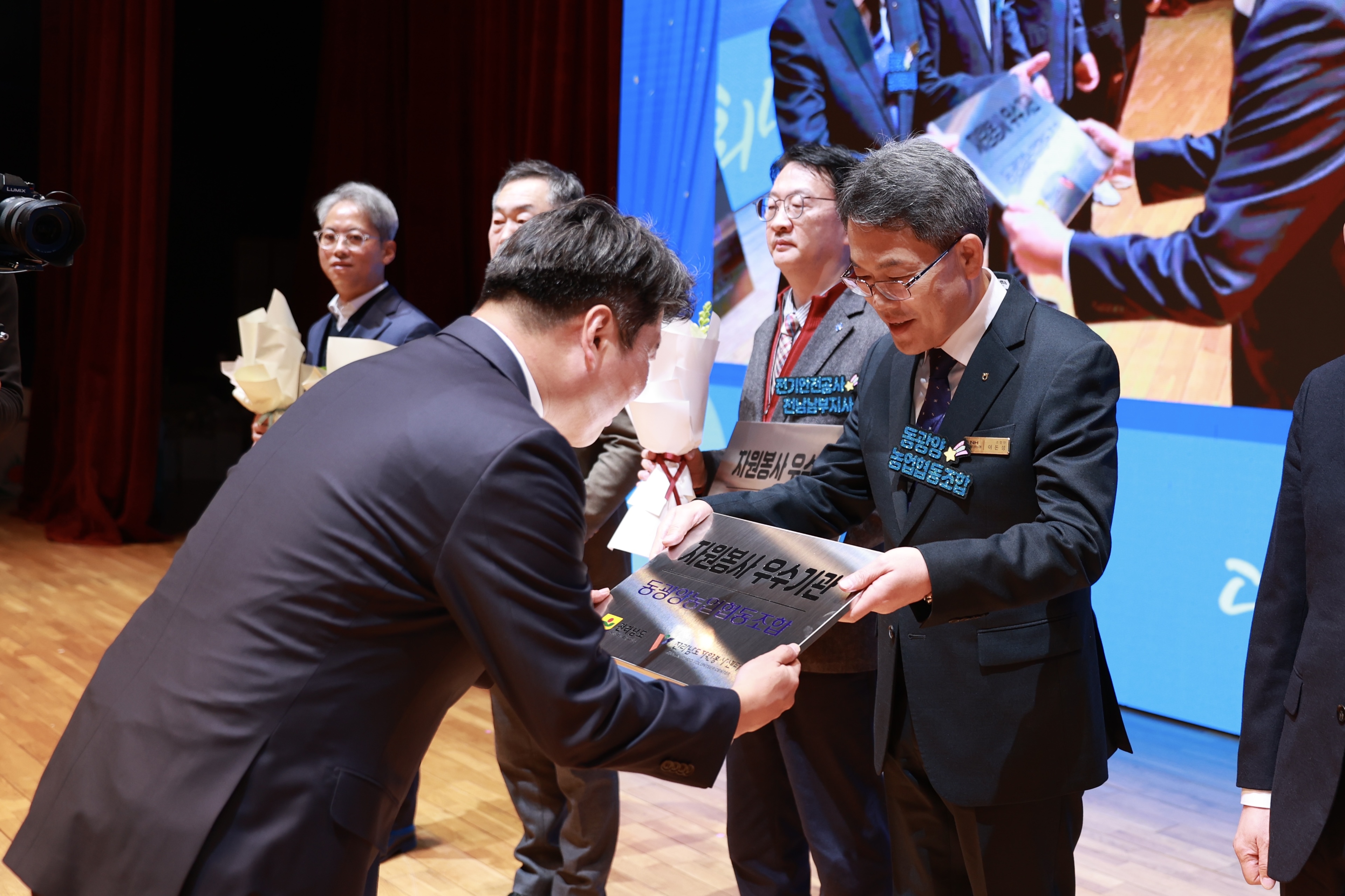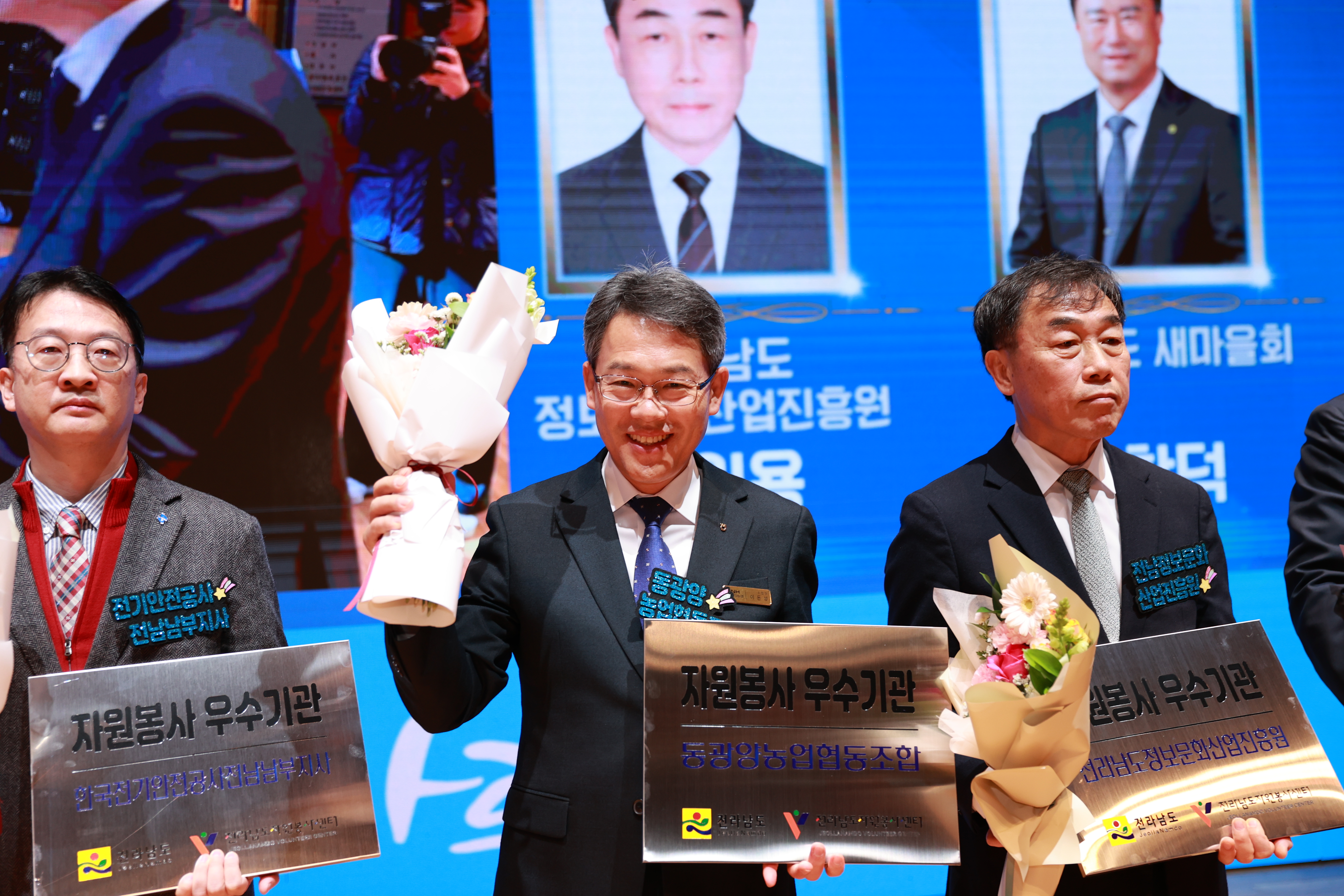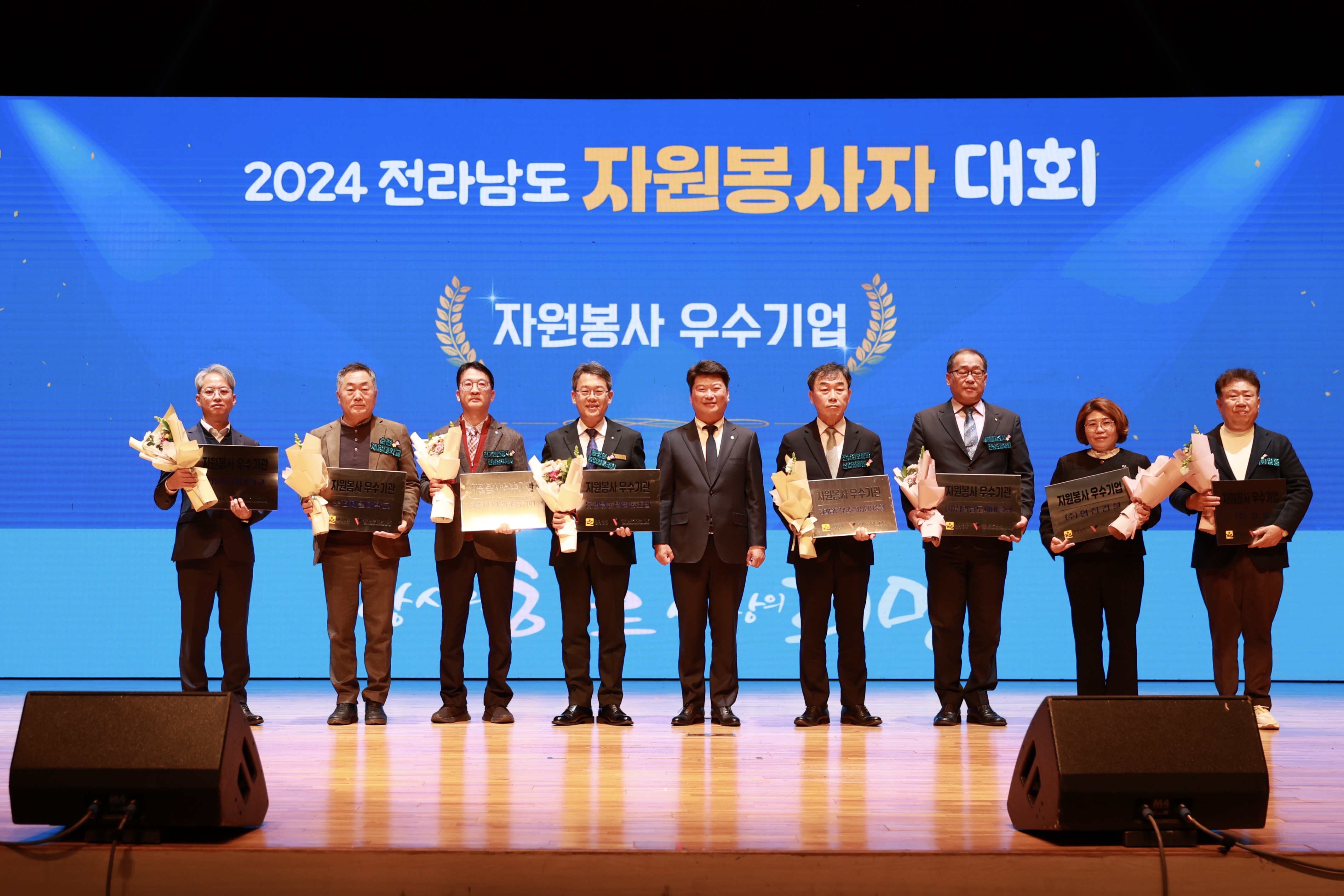 동광양농협(조합장 이돈성)이 4일 전남도청 김대중 강당에서 열린 ‘2024 전라남도 자원봉사자 대회’에서 자원봉사 우수기업에 선정되어 현판을 수여 받았다.
