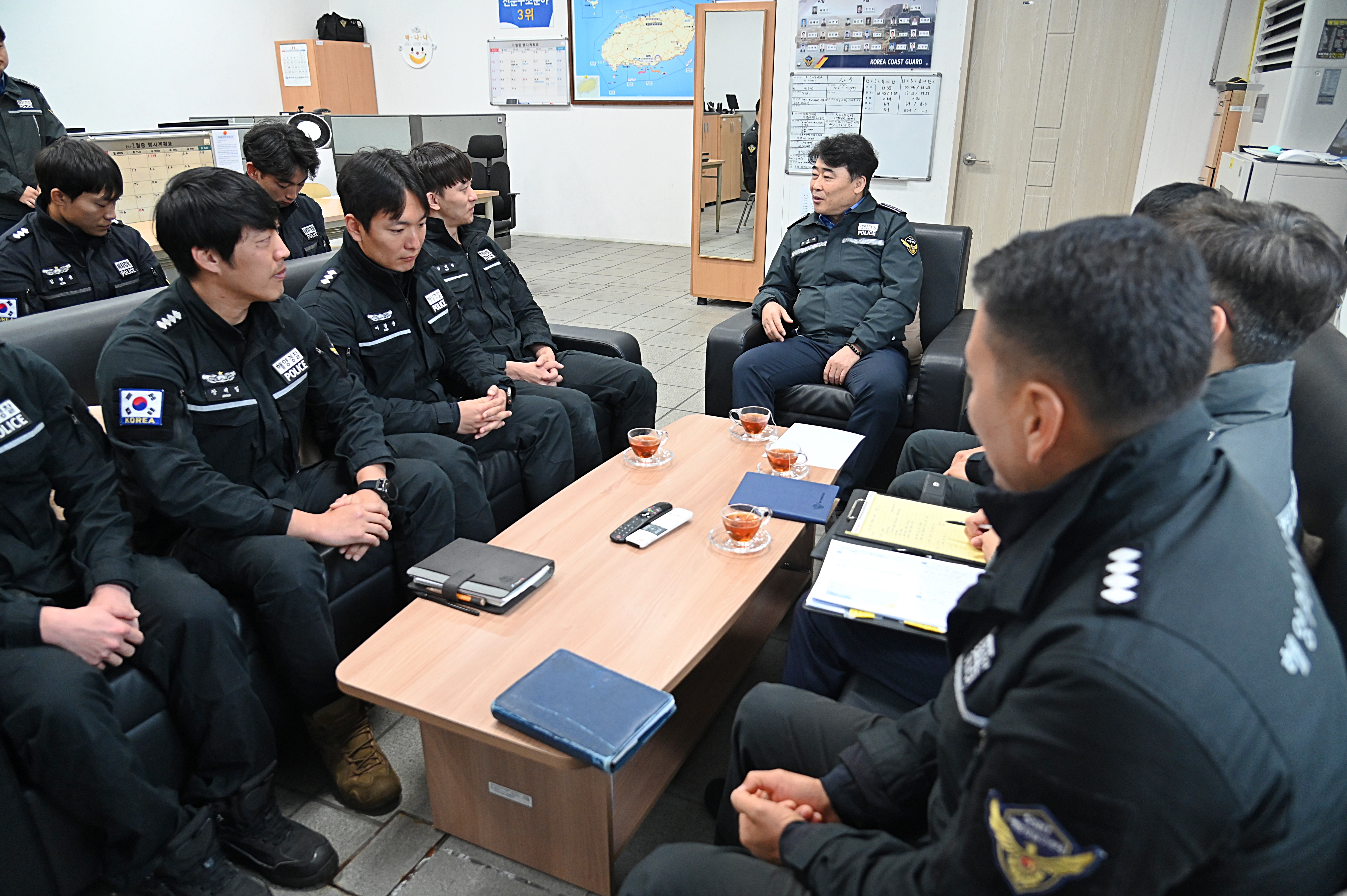 서귀포해경서장은 구조대와 서귀포파출소를 방문하여 전반적인 서귀포 해역 치안 유지 및 취약개소 분석을 통한 현장점검을 실시했다.