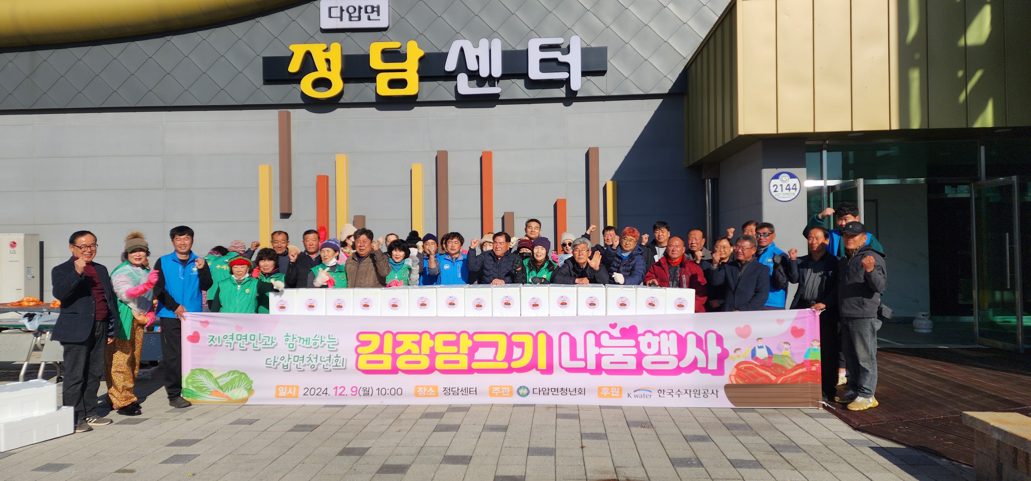 다압면 청년회는 다압면 정담센터 앞에서 청년회 주관으로 한국 수자원공사의 후원을 받아 다압면 청년회원 및 새마을 부녀회원과 함께 김장나눔행사를 10시부터 했다.
