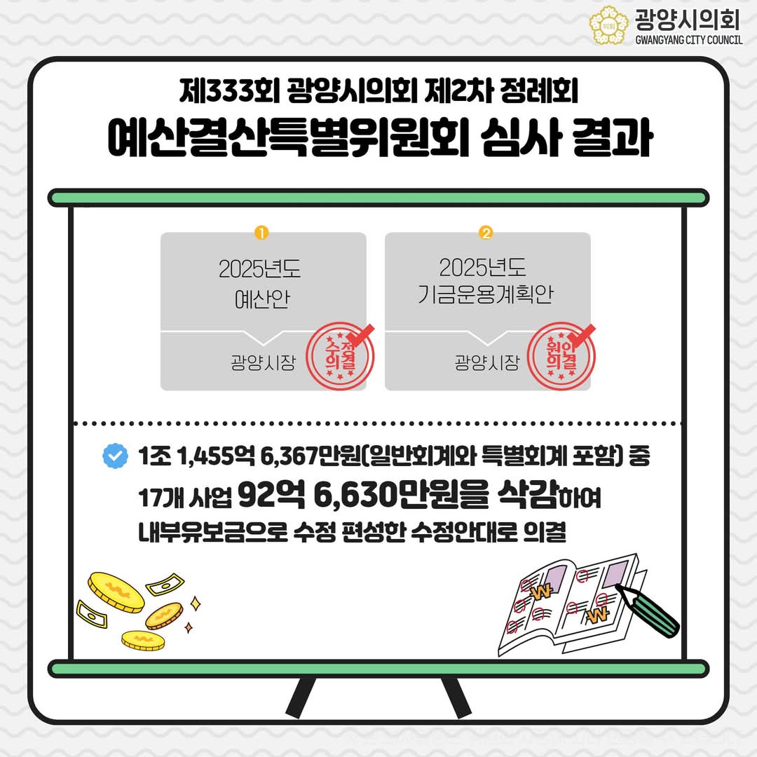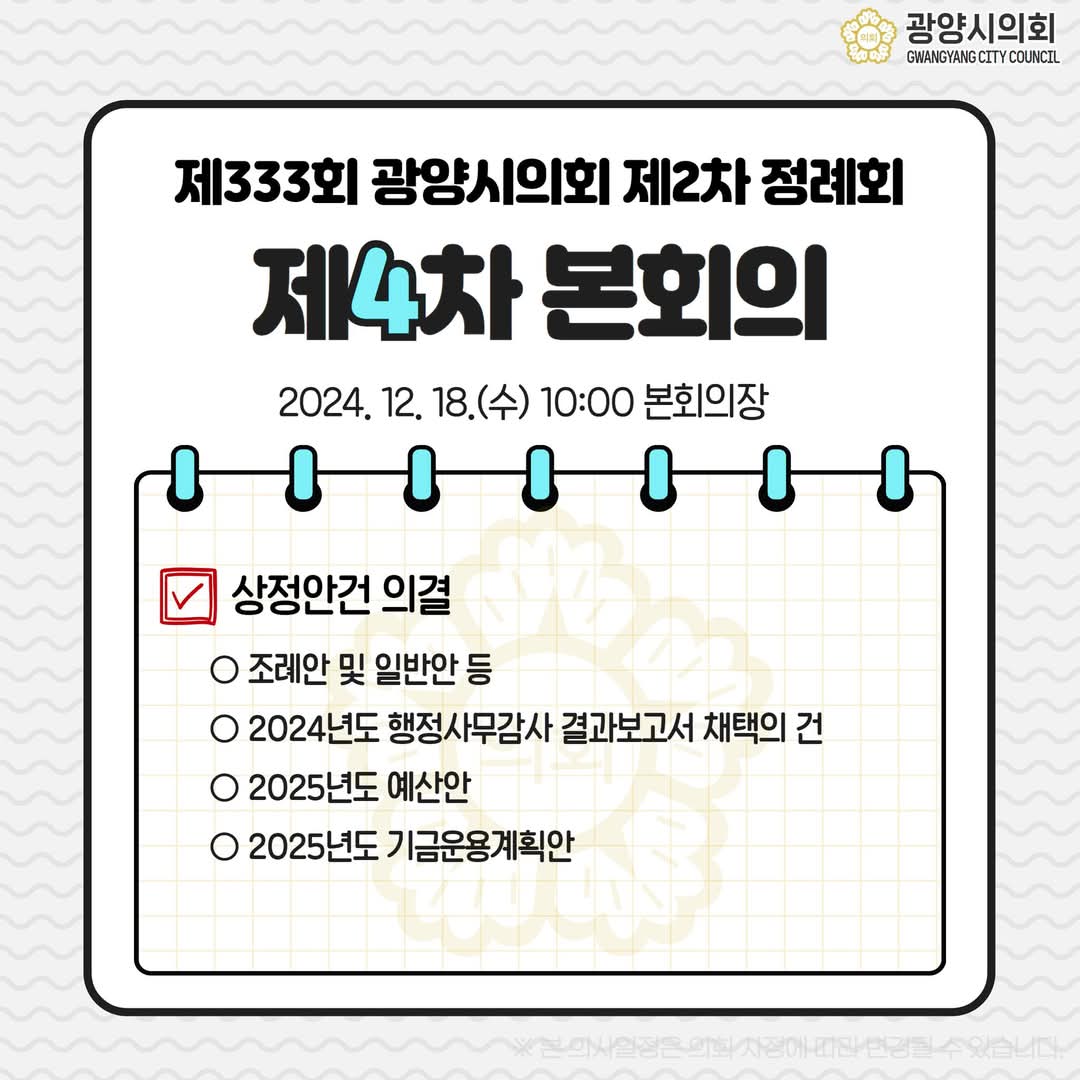 제333회 광양시의회 제2차 정례회 기간 동안 2025년 본예산을 의결하고
