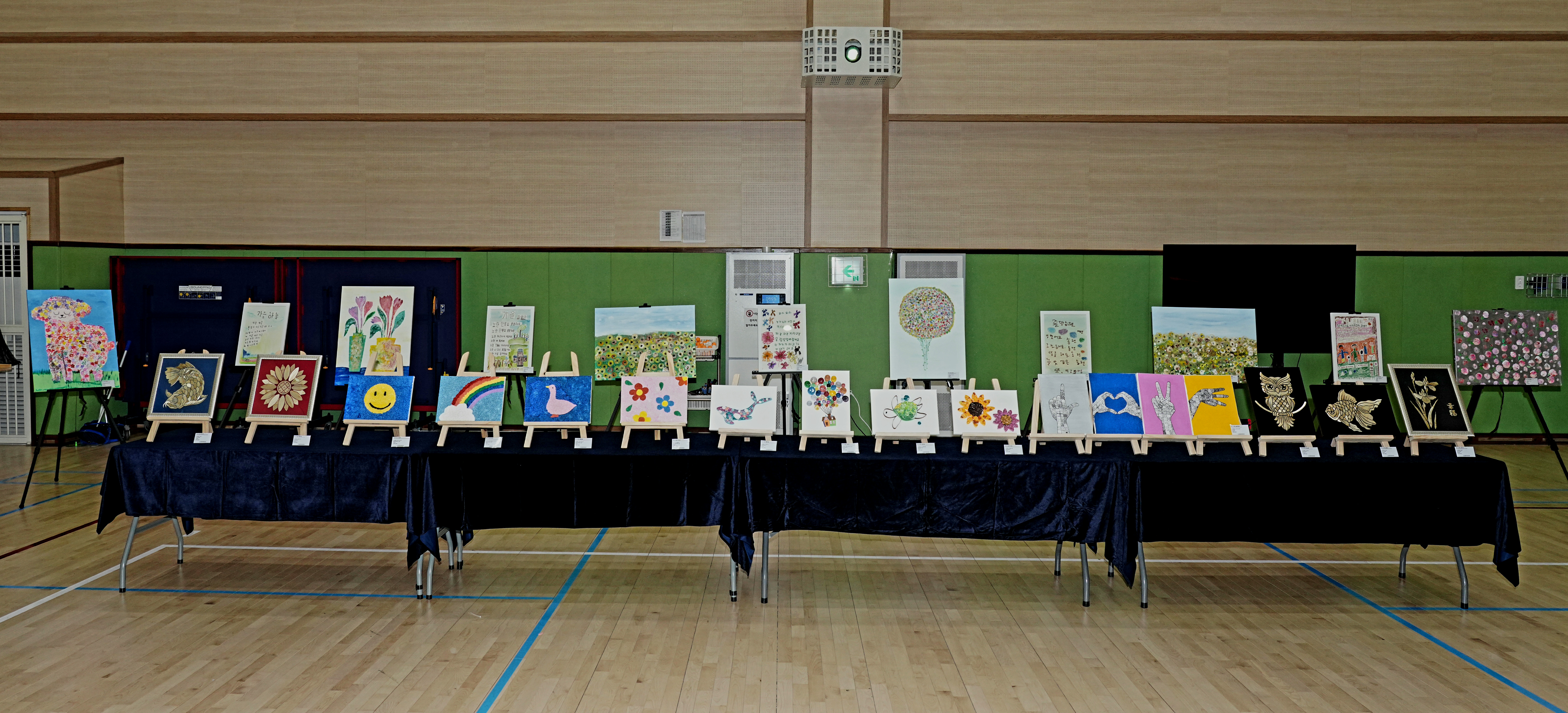 광양햇살학교 강당에서 열린 작품전시회는 맥간공예, 미술, 캘리그라피, 한글문해교실의 시화 등 총 40여 점의 작품이 전시되었다.