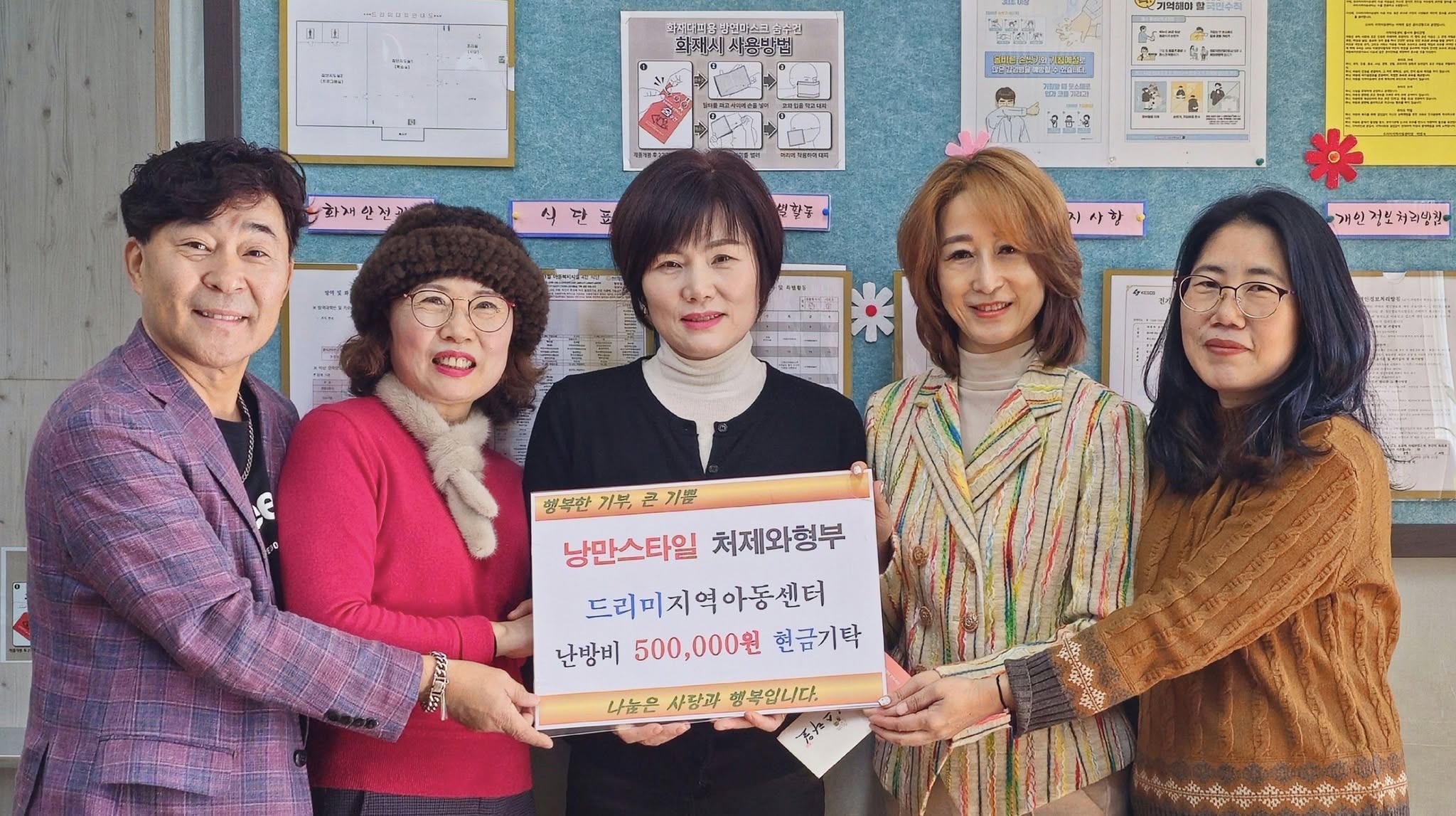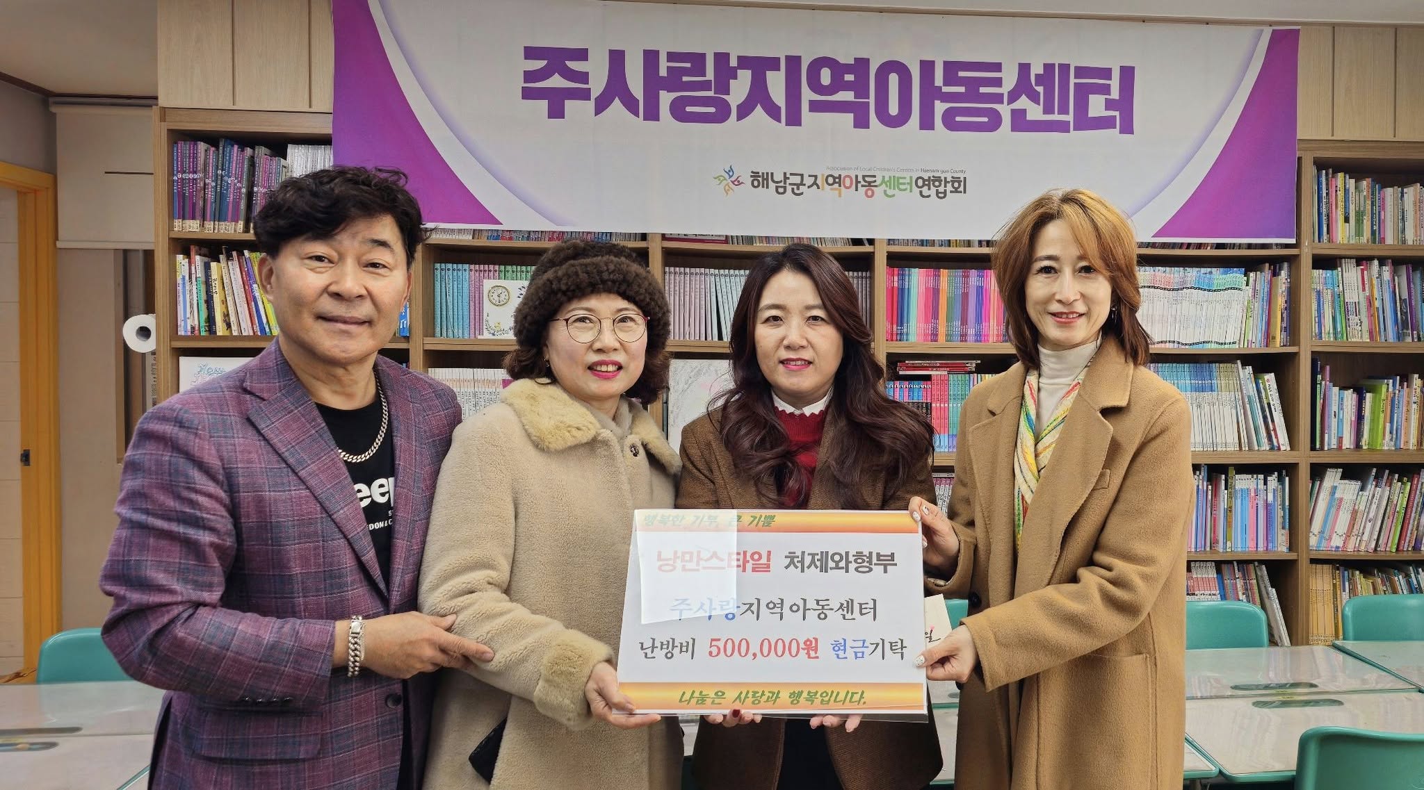전국에서 활동중인 통기타밴드 낭만스타일 처제와형부(대표 배미기)가 지난 19일 지역 아동들이 따뜻한 겨울을 지낼수 있도록 공연 및 유튜브 광고수익금 중 100만원을 주사랑 및 드리미 지역아동센터 겨울철 난방비로 각각 50만원씩 현금 기부했으며, 매년 4회째 100만원씩 어려운 이웃에 기부하고 있다.