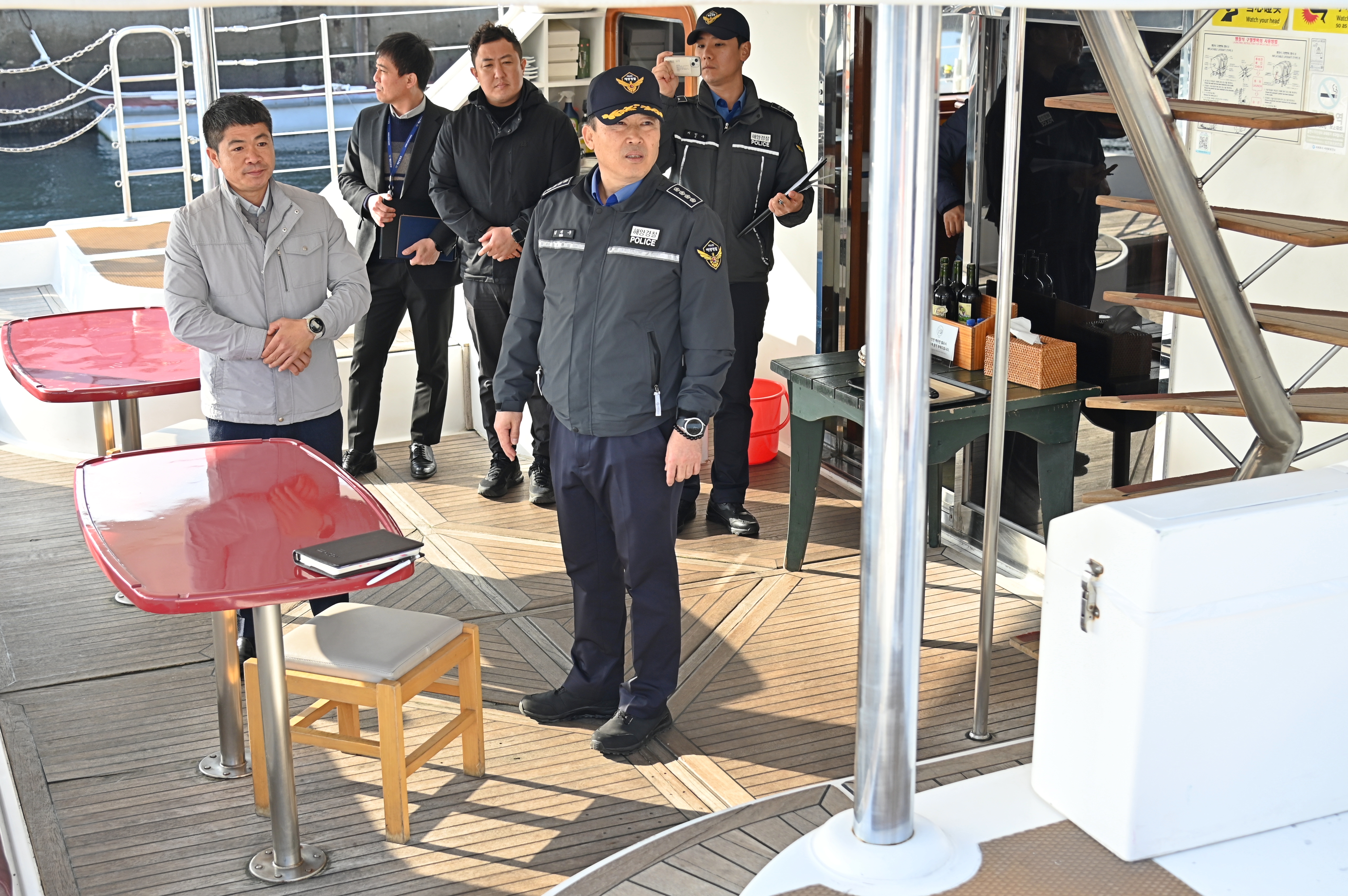 서귀포해양경찰서(서장 김서구)는 오늘(26일) ‘2025년 을사년 유선 해맞이 행사’를 대비해 안전사고 예방을 위한 유선과 유선장 현장점검을 실시했다.