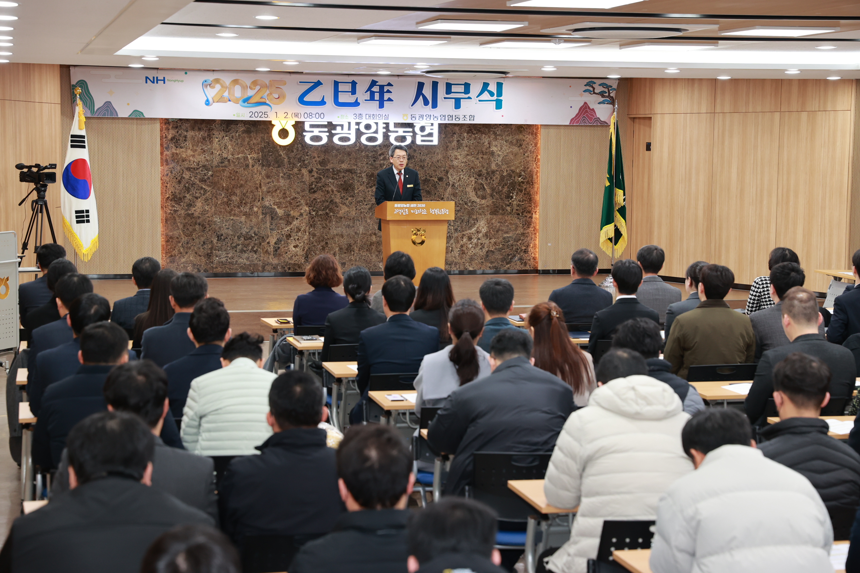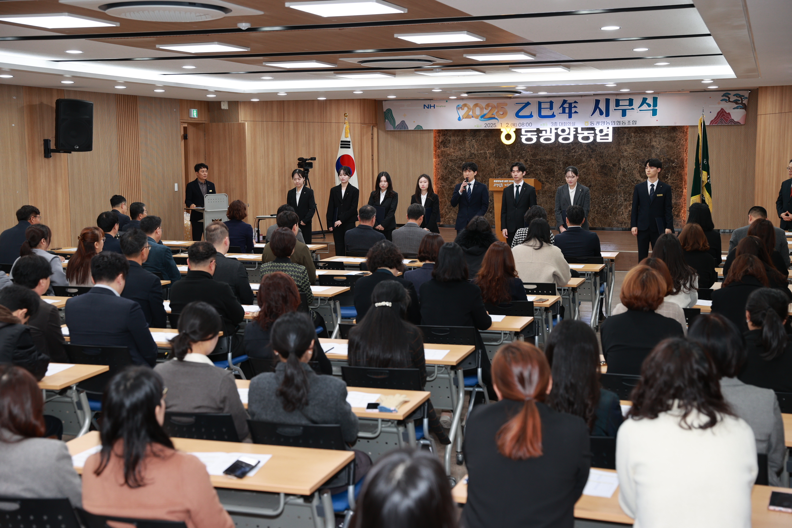 동광양농협(조합장 이돈성)은 2일 본점 대회의실에서 임직원 130여 명이 참석한 가운데 2025년 시무식을 열었다.