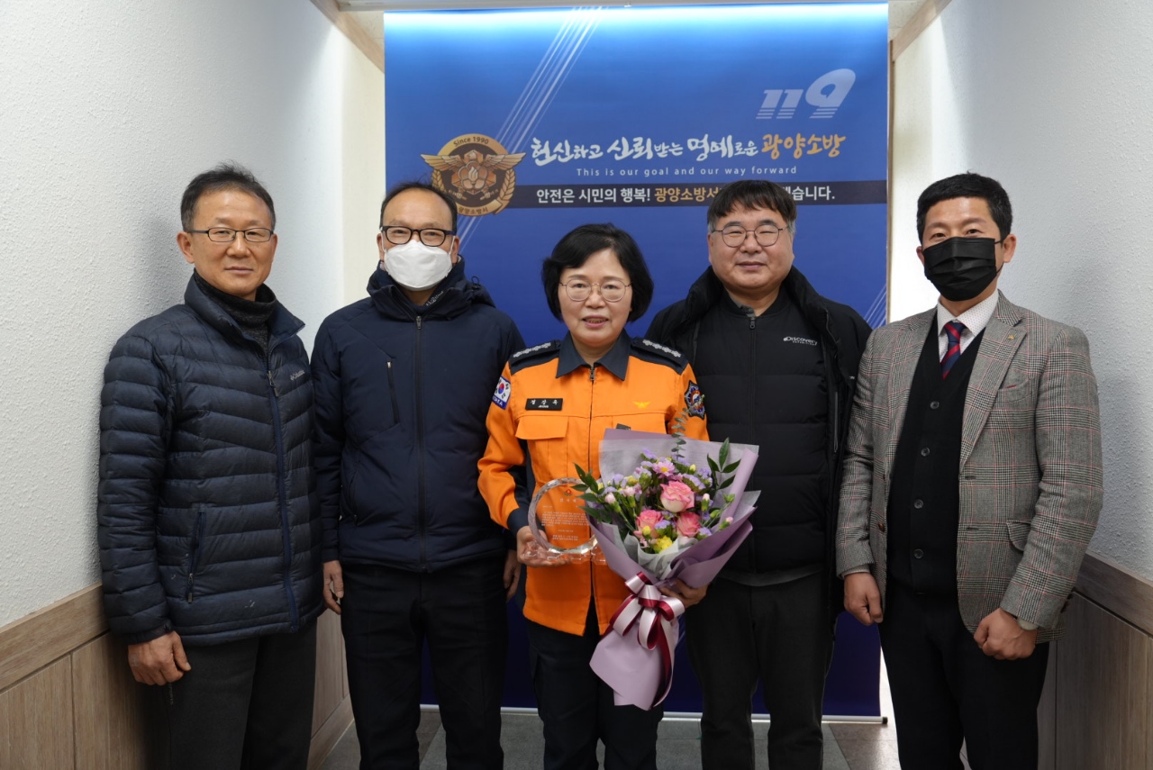 정강옥 광양소방서장은 “깊은 관심과 배려에 뿌듯한 마음을 감출 길 없다”며, “아파트 입주민 및 입주자 대표회의에 감사의 마음을 전하고 사회 귀감이 되는 일로써, 앞으로도 시민들의 안전을 위하여 최선의 노력을 다하겠다”고 밝혔다.