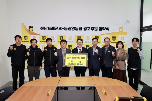 동광양농협(조합장 이돈성)이 지역을 대표하는 프로축구팀 전남드래곤즈와 6일 전남드래곤즈 사무실에서 광고후원 ...