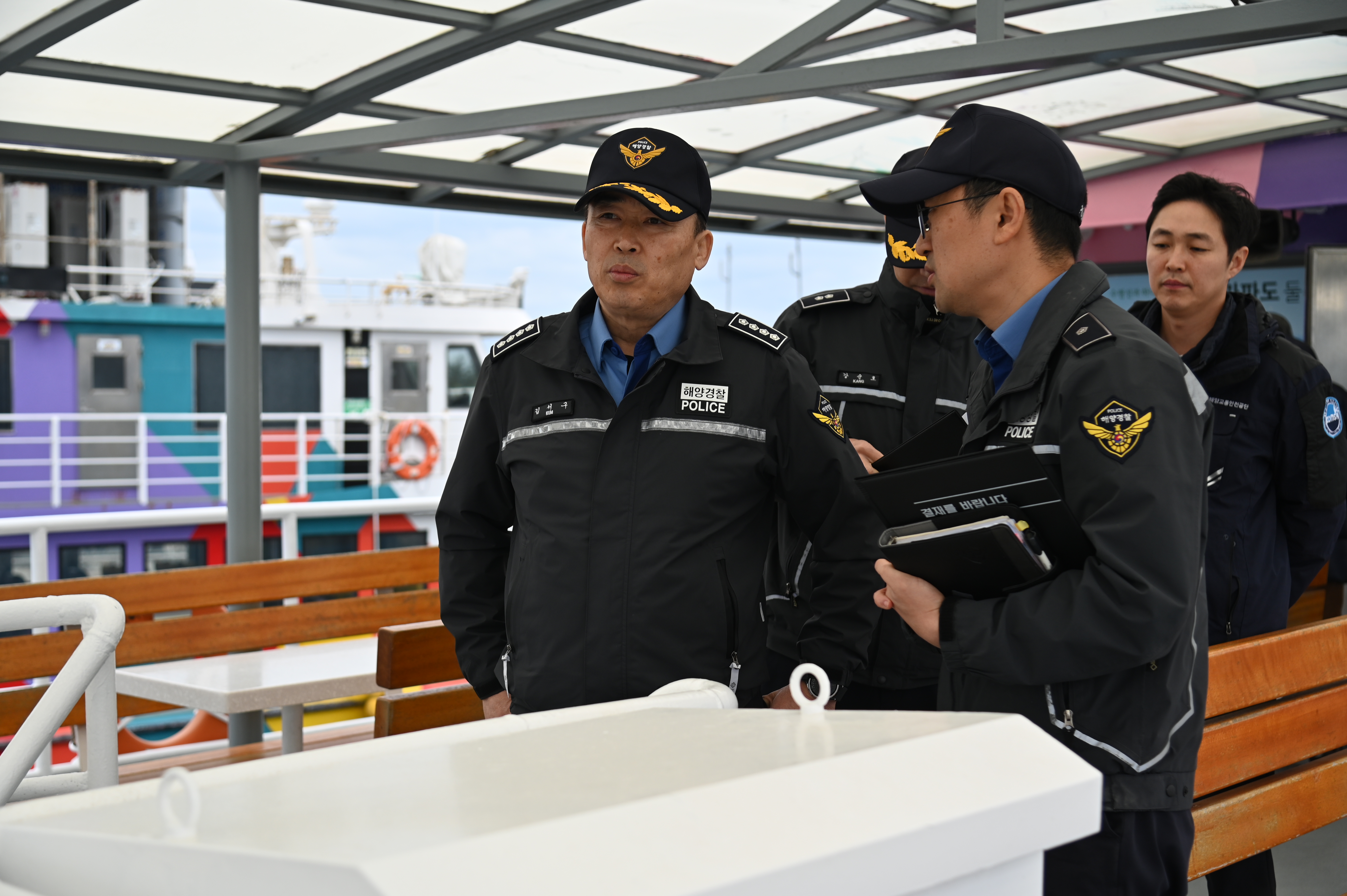 서귀포해양경찰서(서장 김서구)는 오늘(16일) 다가오는 설 연휴를 맞아 고향을 찾는 귀성객과 관광객들이 안전하게 여객선을 이용할 수 있도록 여객선·항만시설과 연안구역 등 현장 안전점검을 실시하였다.