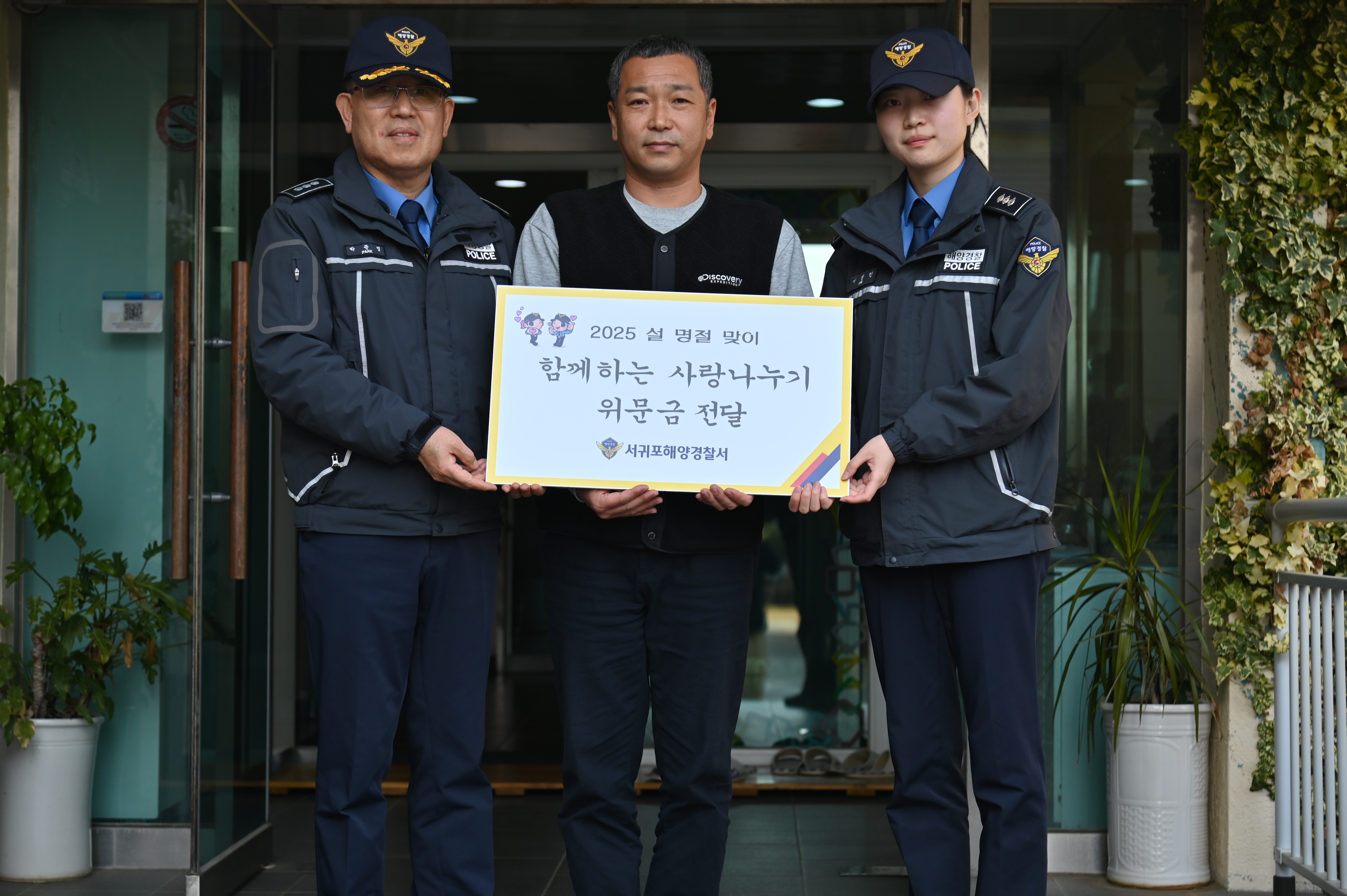설 명절을 맞이하여 서귀포해경 경찰관들의 정성을 모아 자발적으로 모금 된 이번 사랑 나눔 위문금은 소외된 이웃을 찾아 지원하기 위해 300만원 상당의 기부금의 형태로 전달했다.