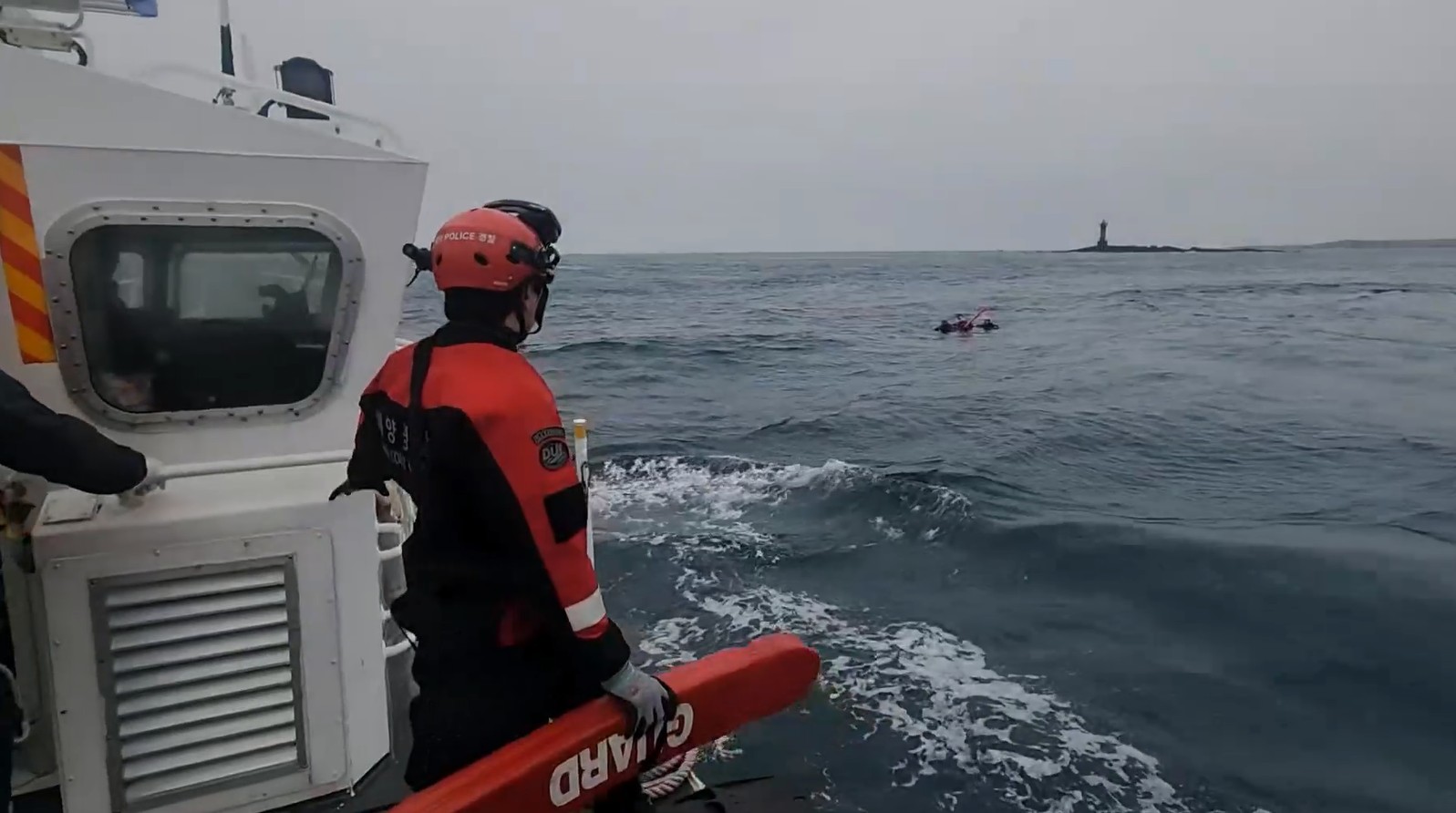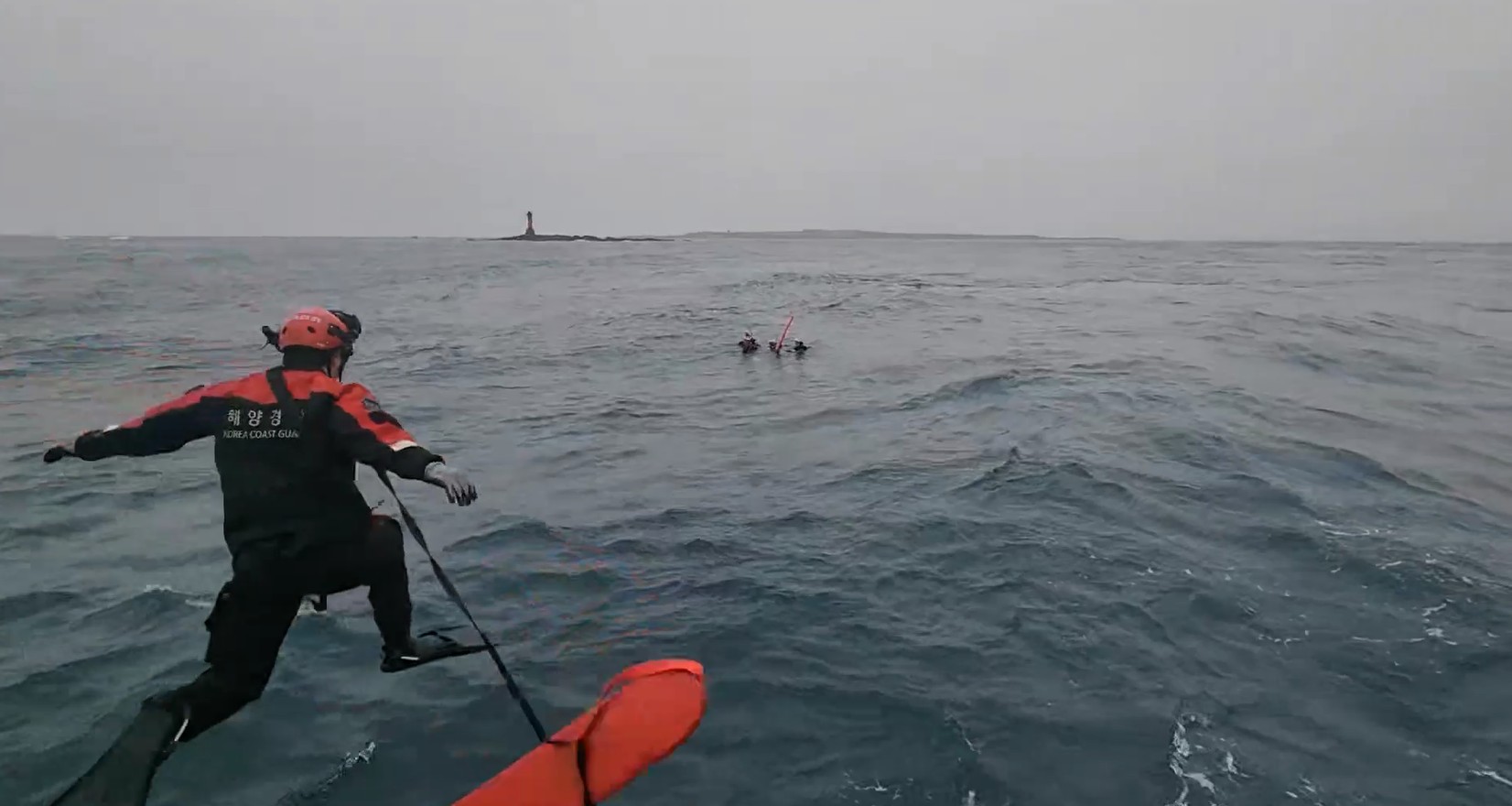 서귀포해경은 신고 접수 즉시 화순파출소 연안구조정을 현장에 출동시켜 수색 중 같은 날 4시 38분 입수 위치로부터 약 2km 떨어진 지점인 가파도 광포탄 동쪽 500m에서 4명을 발견하고, 추가 수색 중 인근 300m가량 떨어진 곳에서 부이 인근에 나머지 1명을 확인, 전원 구조하여 A선박에 편승시켜 안전하게 운진항으로 이송하였다.