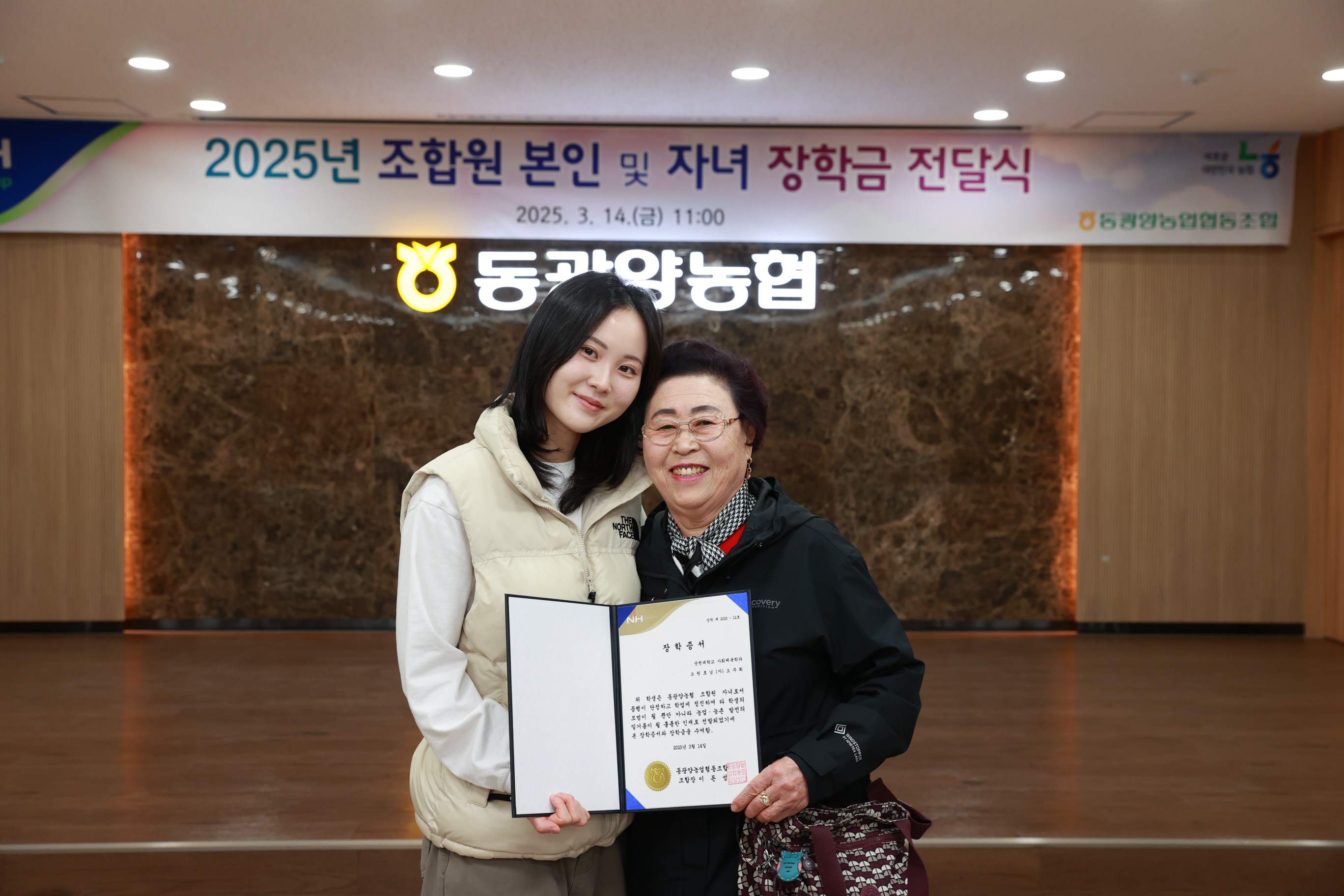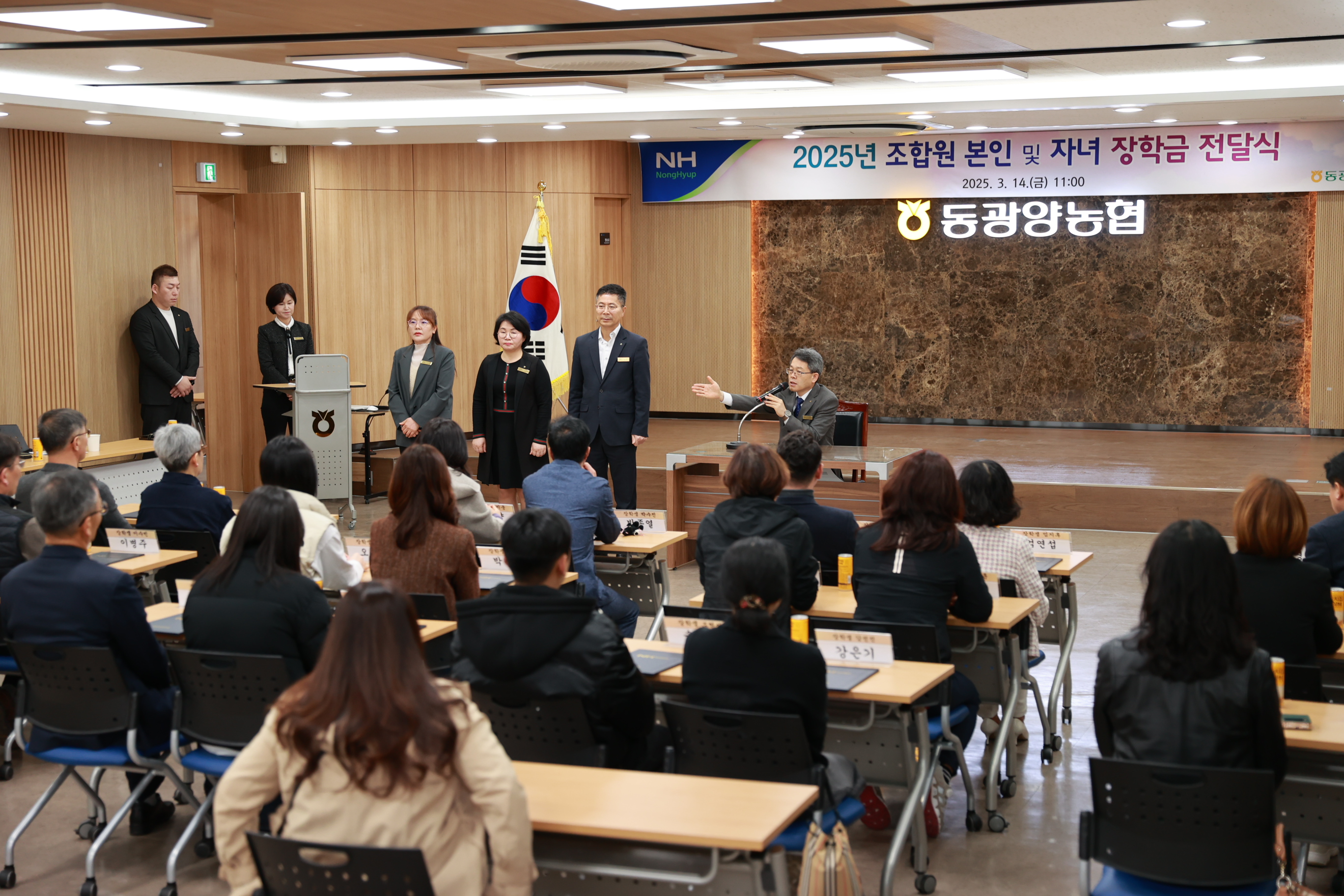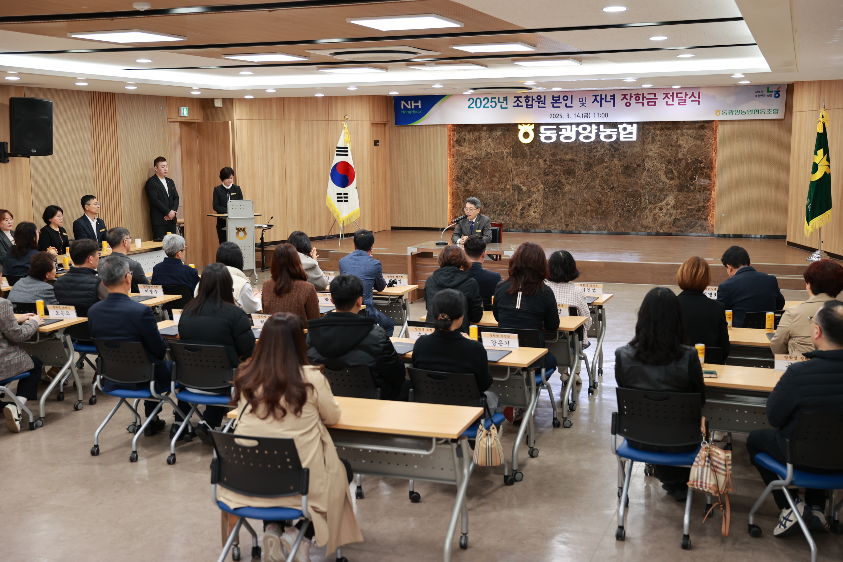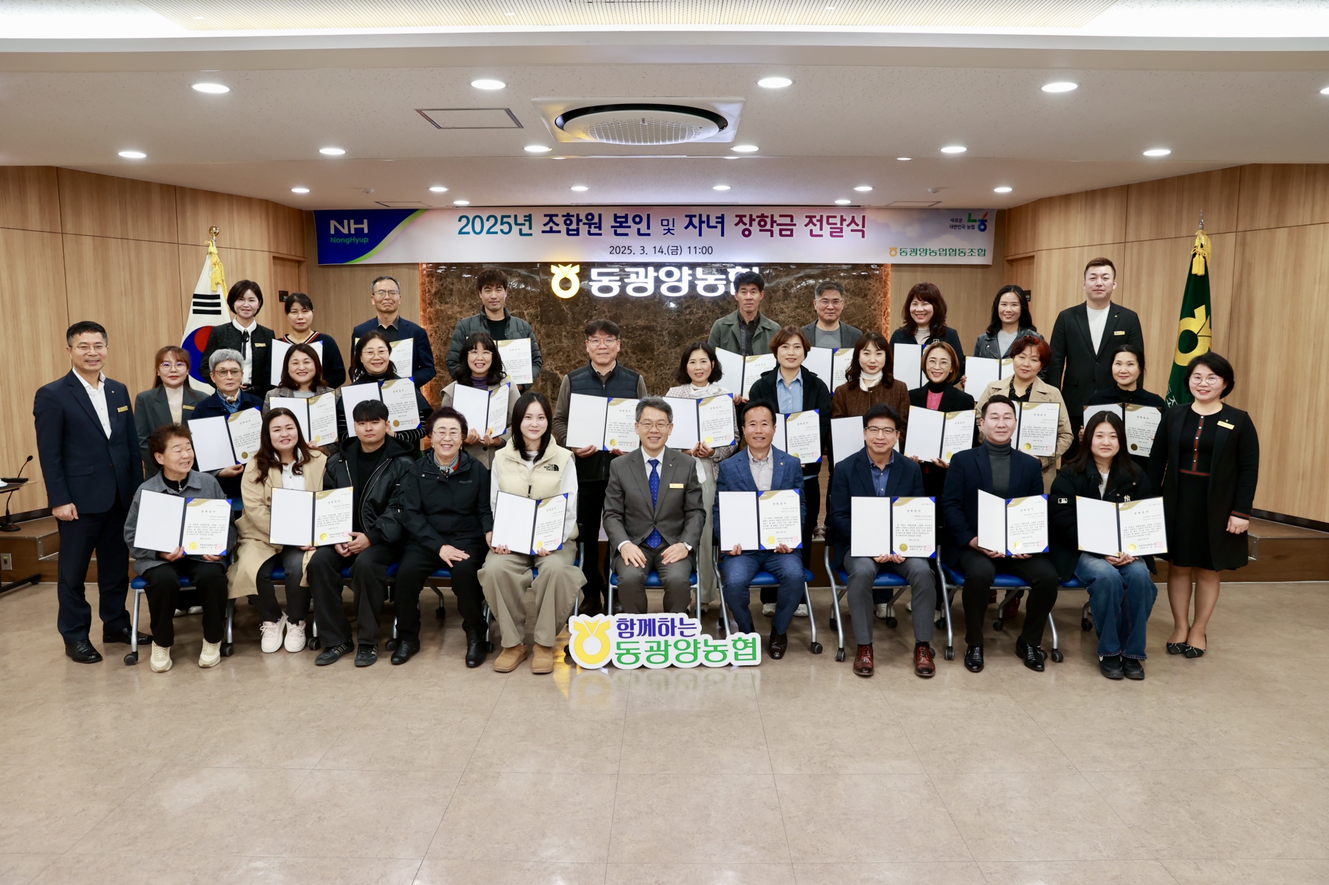 동광양농협(조합장 이돈성)은 14일 본점 3층 대회의실에서 '2025년 조합원 및 조합원 자녀 장학금 전달식'을 개최하고, 대학 졸업을 앞둔 조합원 자녀 26명에게 각 100만 원씩, 총 2,600만 원의 장학금을 전달했다.
