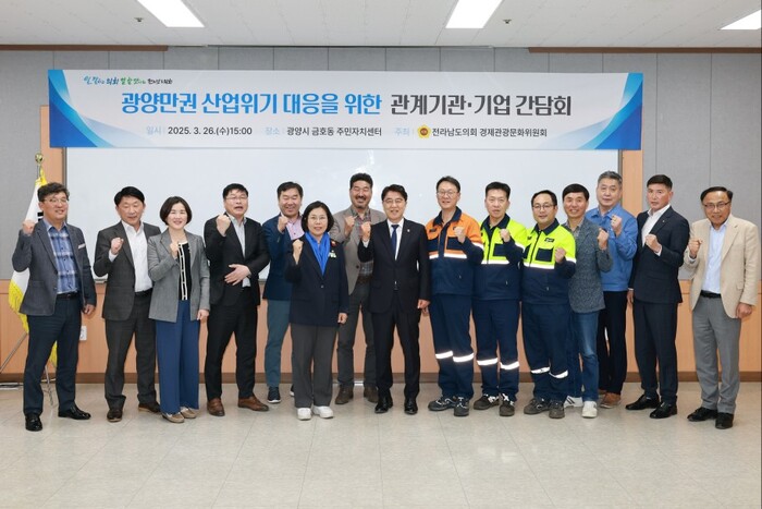 광양만권 주요산업(철강·비철·이차전지) 관세 위기 및 산업용 전기료 급등 등 어려움을 해소하기 위해 전남도의회, 관계기관, 기업들이 함께 모여 의견을 나눴다.