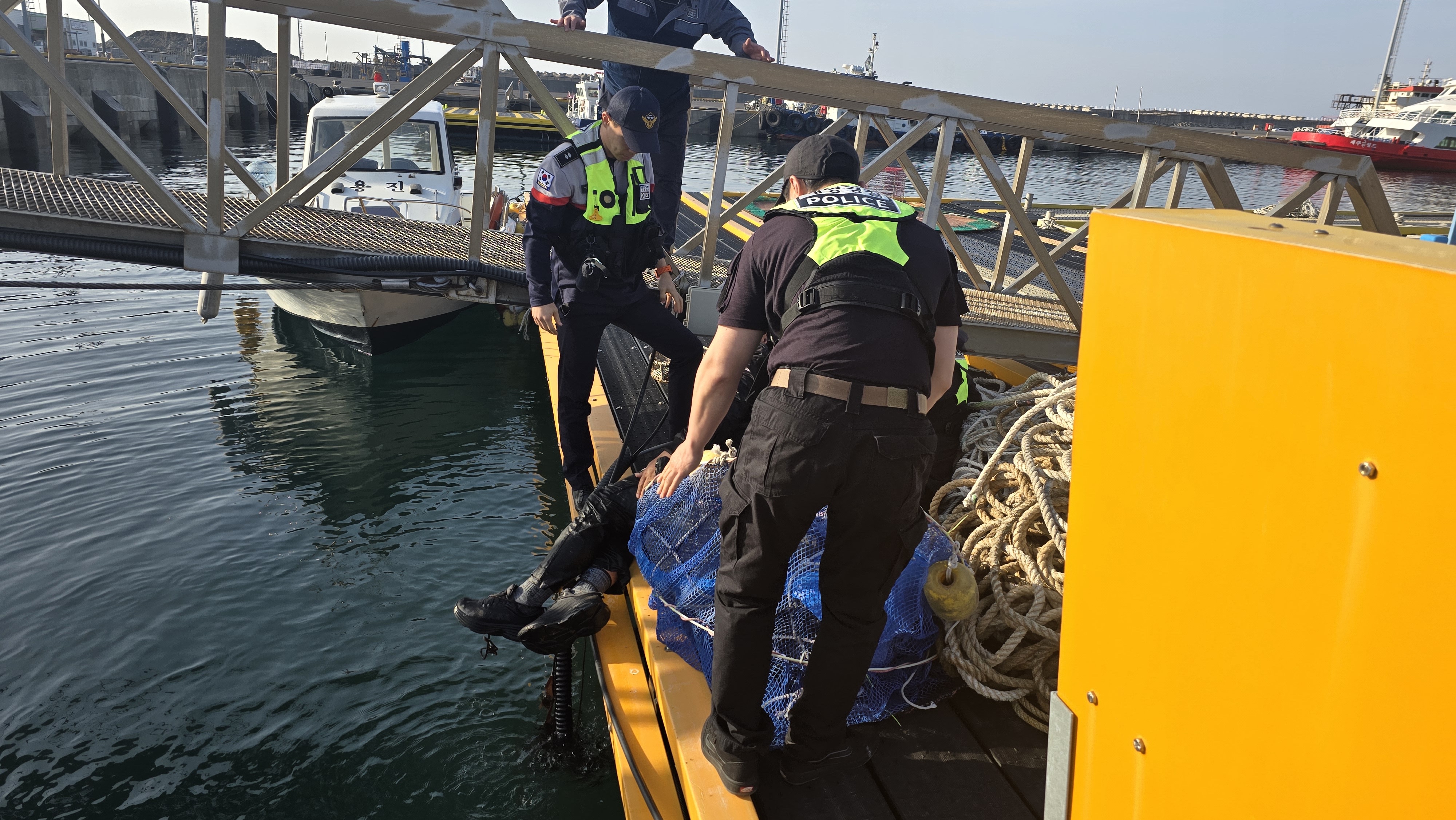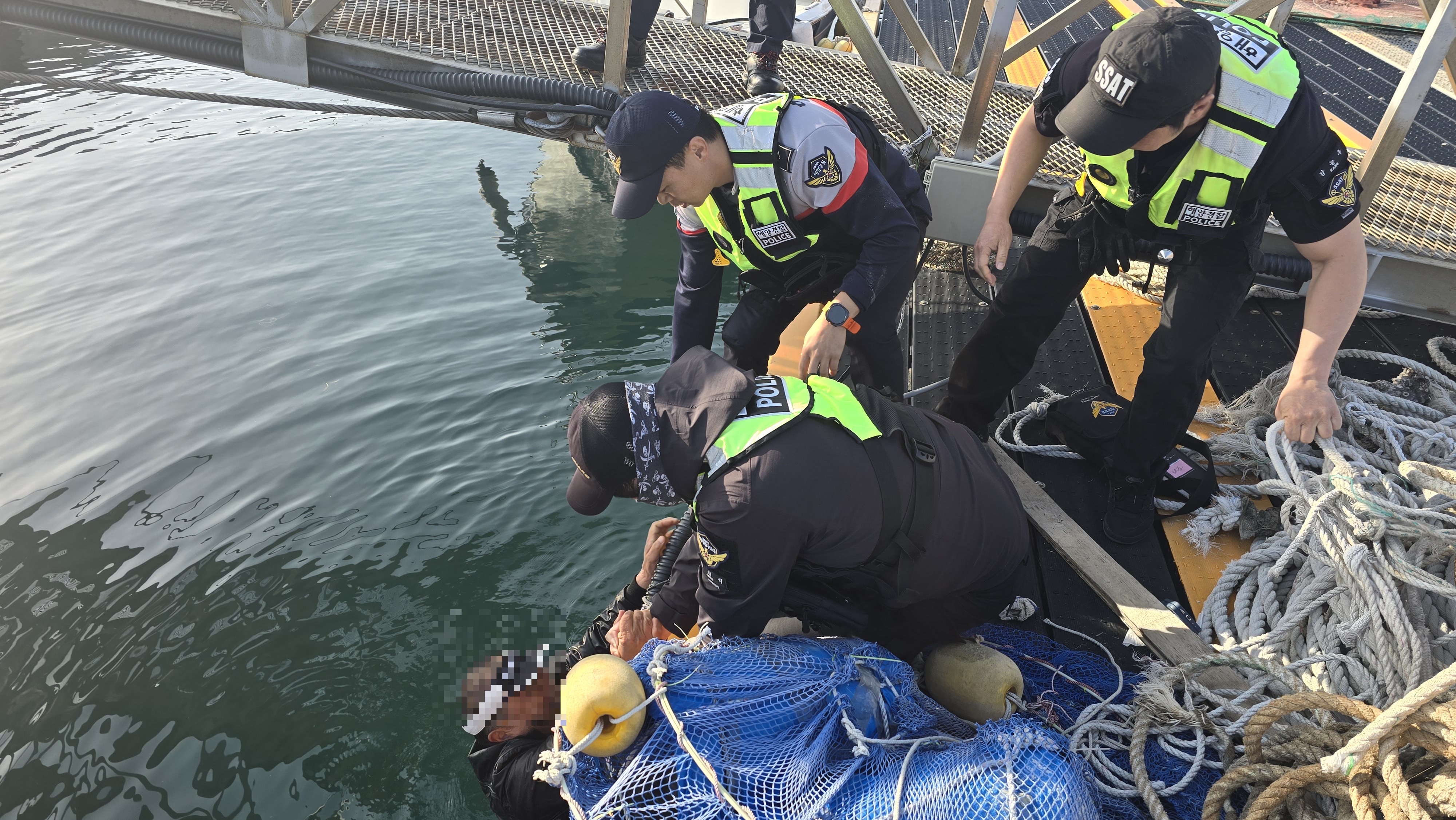 그리고 화순파출소에서는 오늘(11일) 연안구조정 해상 출동차 이동 중 화순항 3부두 해상에서‘살려달라’는 소리를 듣고 확인 결과 폰툰 주변에서 익수자를 발견하고 즉각 구조하였다. 익수자는 약간의 타박상이 있었지만 병원이송은 원하지 않아 귀가하였다.