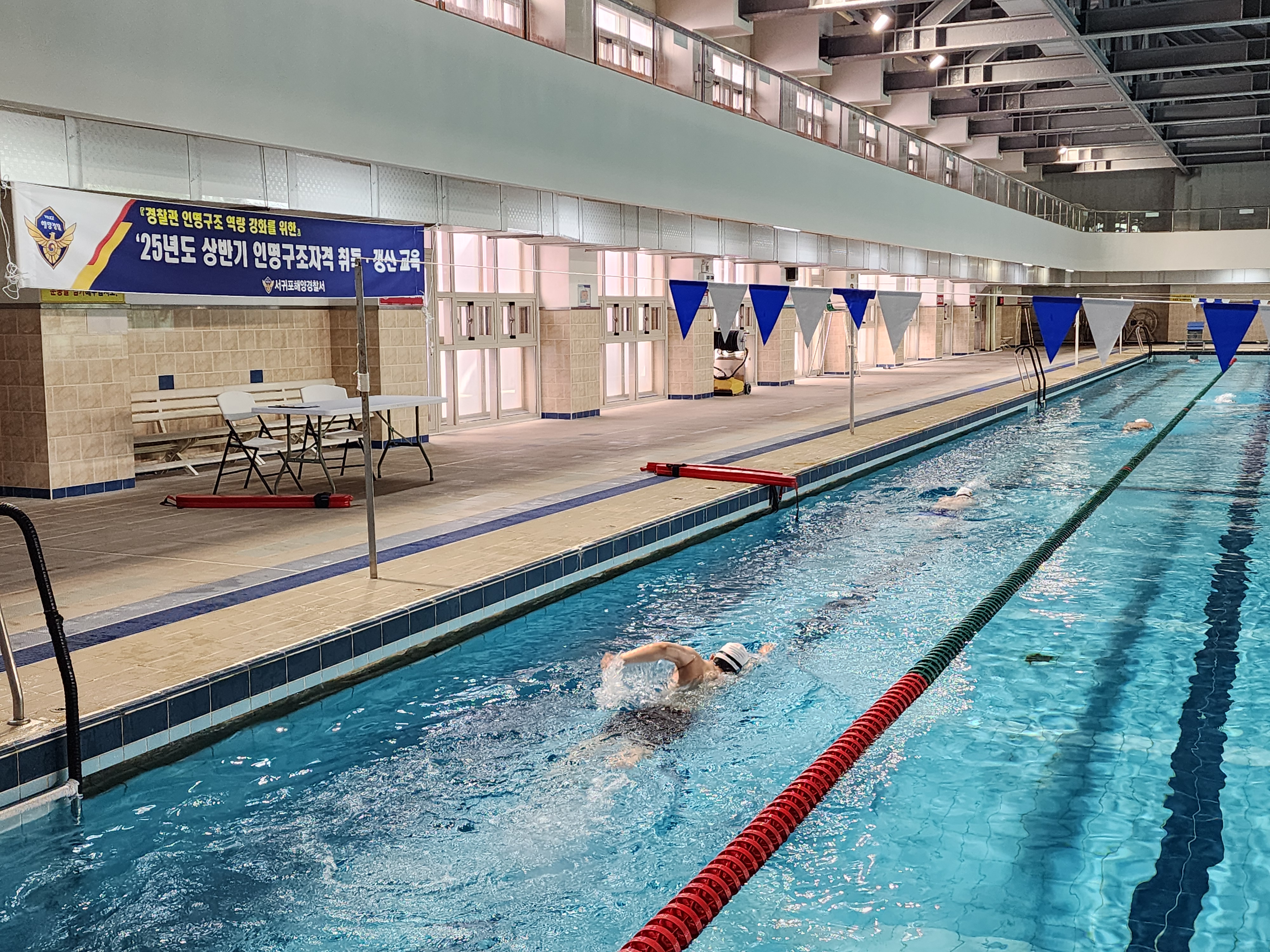 서귀포해양경찰서(서장 김서구)는 어제(14일)부터 오는 25일까지 경찰관 인명구조 역량 강화를 위해 소속 경찰관 73명을 대상으로 인명구조요원 자격 취득․갱신 교육을 진행한다고 밝혔다.
