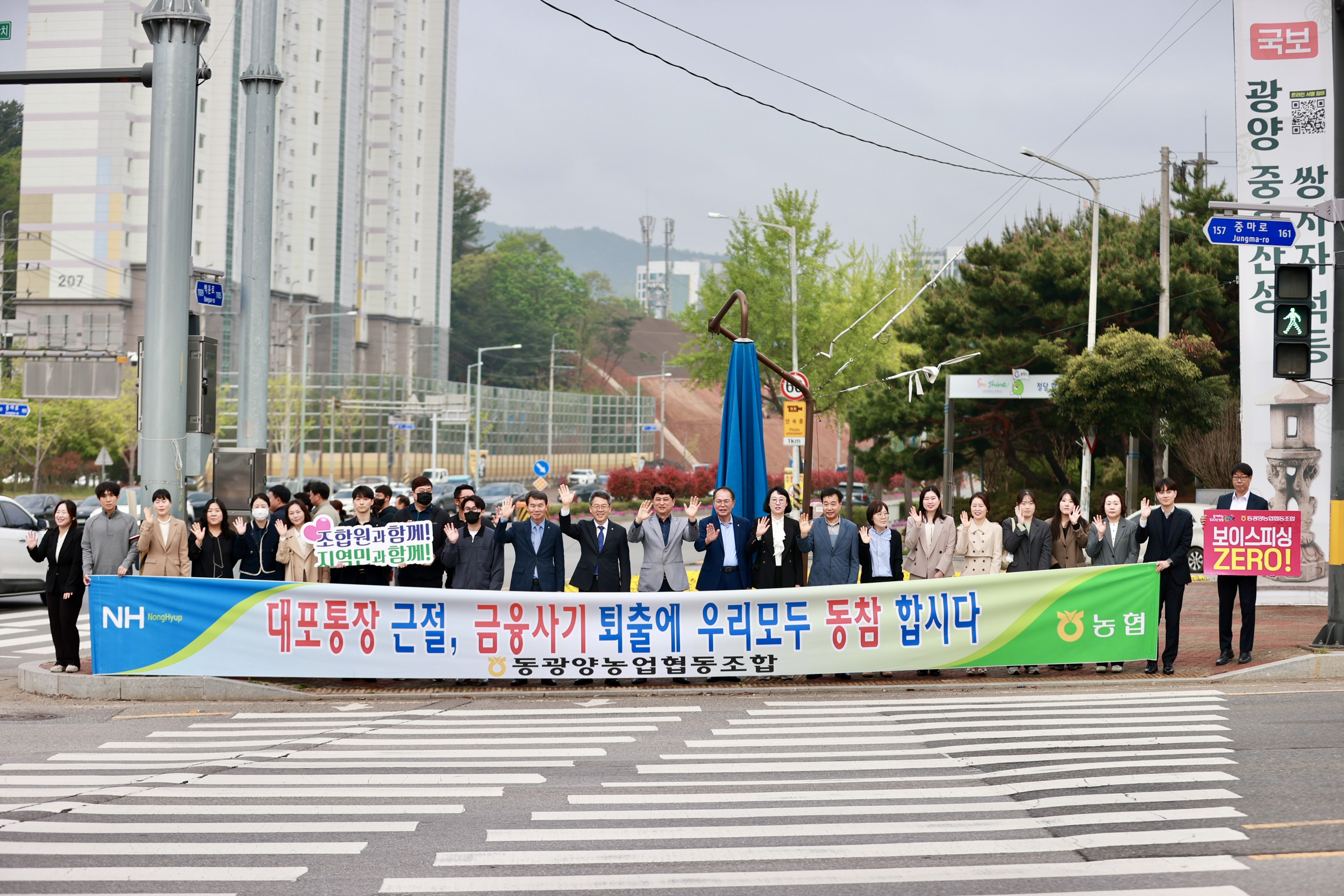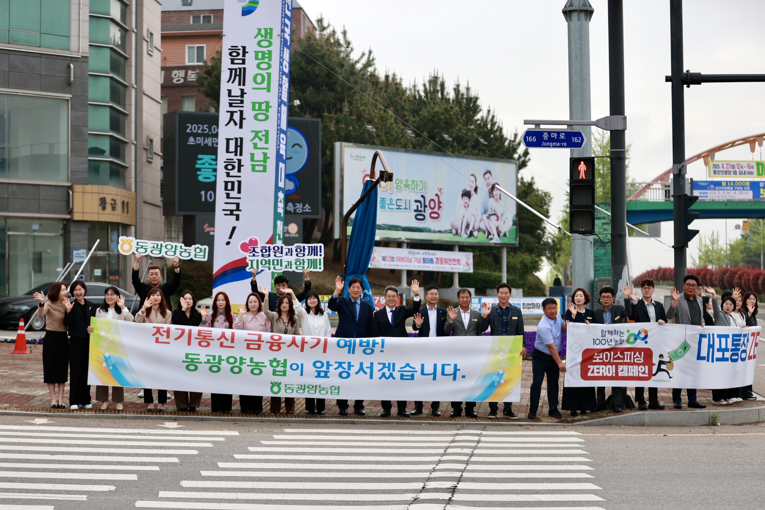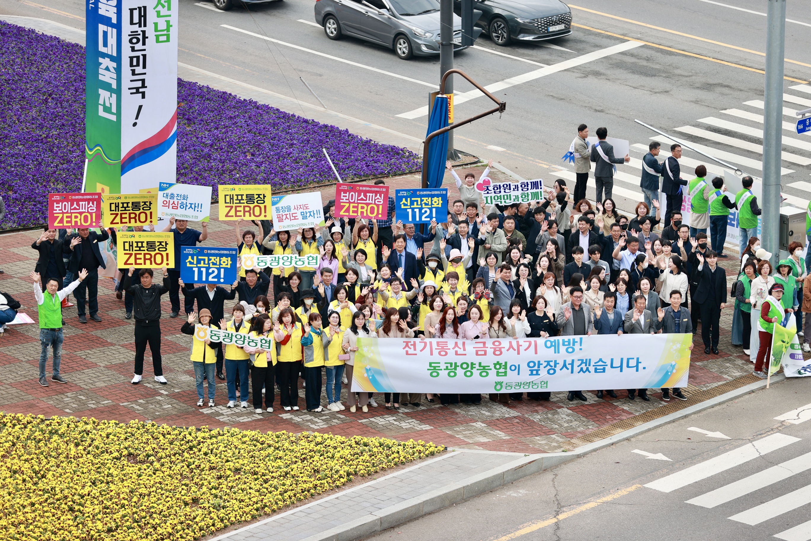 동광양농협(조합장 이돈성)은 21일 광양시 컨테이너부두사거리 일대에서 전기통신금융사기 및 대포통장 근절을 위한 범시민 캠페인을 펼쳤다. 이번 캠페인은 최근 보이스피싱, 스미싱, 파밍 등 지능화되는 금융사기로부터 조합원과 지역민의 소중한 자산을 보호하고자 마련됐다.