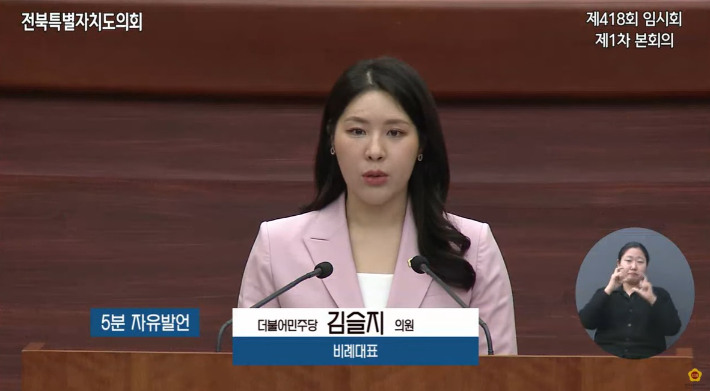 전북특별자치도의회 기획행정위원회 김슬지 의원(비례)이 23일 열린 제418회 임시회 제1차 본회의에서 5분 자유발언을 통해 전북형 농어촌 기본사회의 실현을 위한 ‘농어촌 기본주택’의 도입을 제안했다.