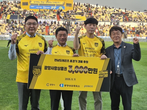 광양상공회의소(회장 우광일)가 5월 11일(일)에 열린 전남드래곤즈 홈경기 개막전에 정인화 광양시장, 고재윤...