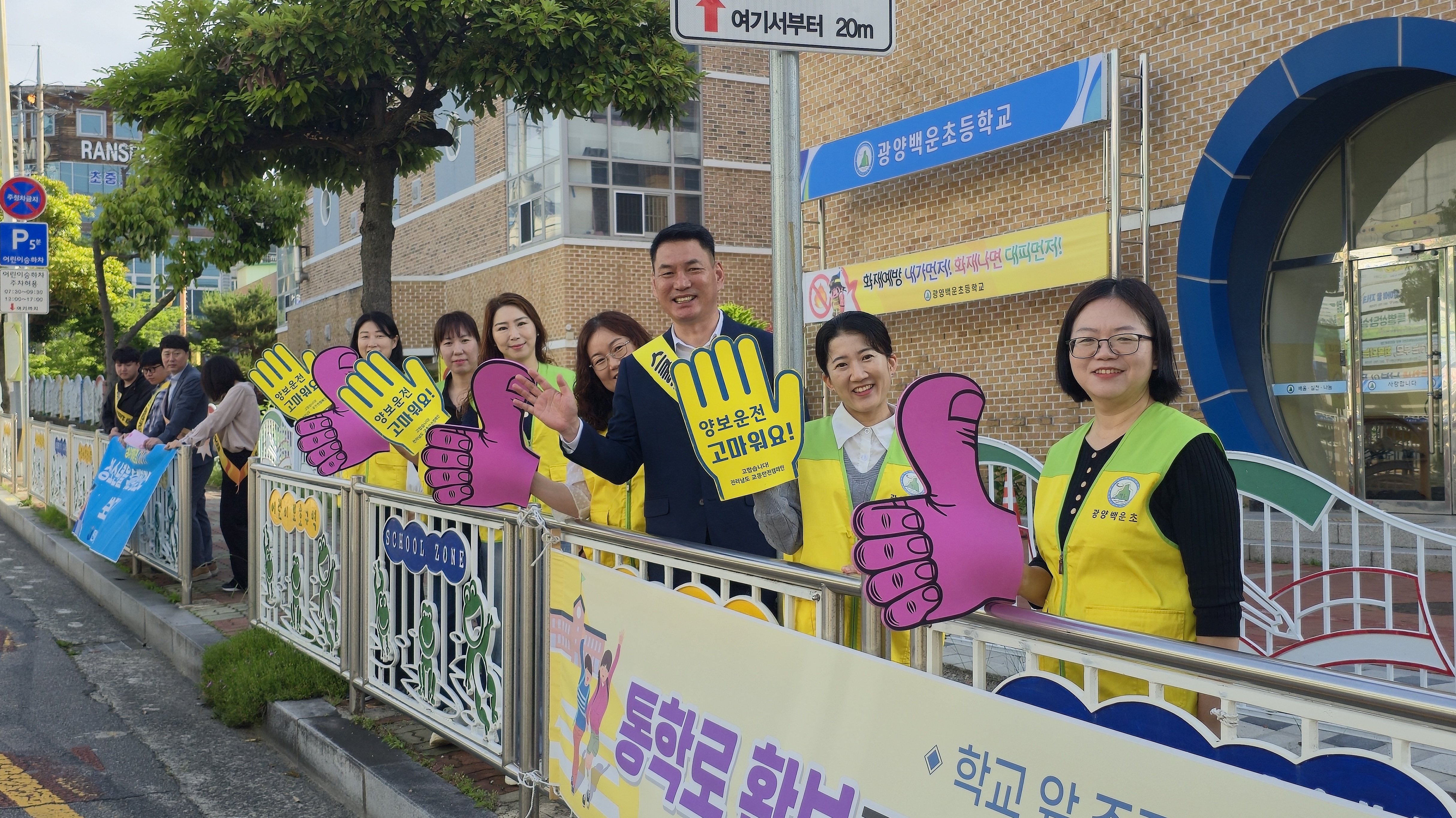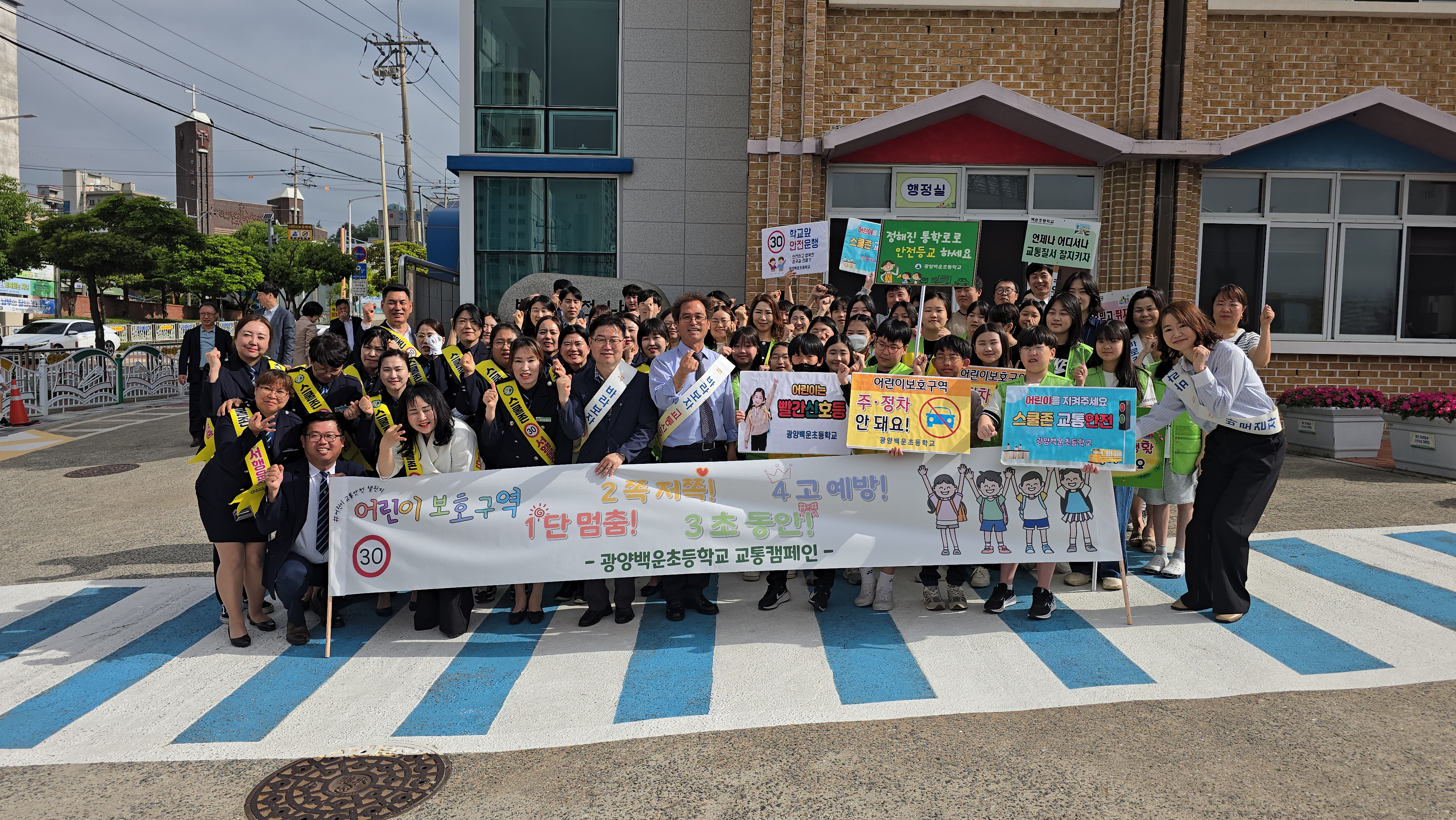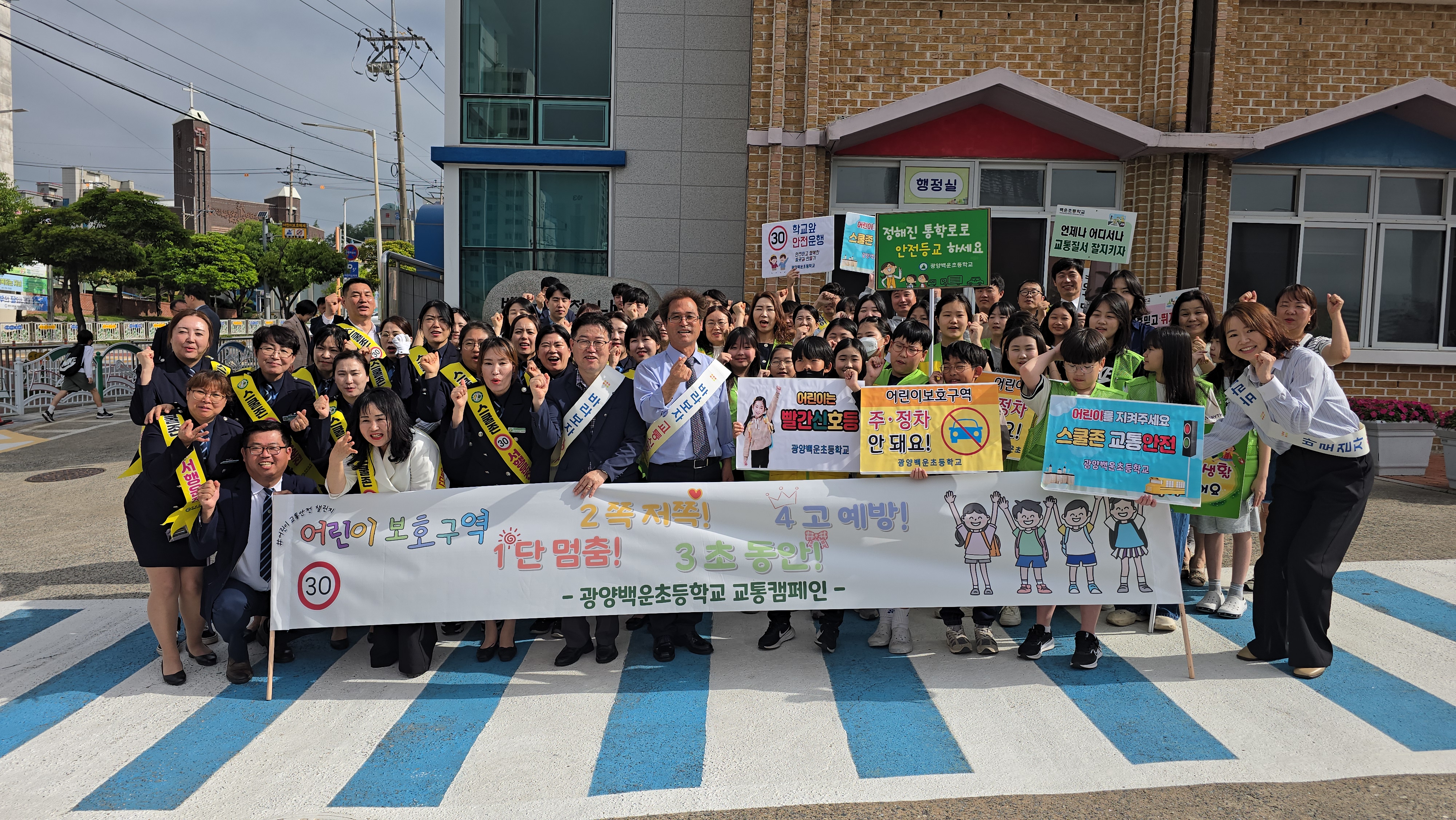 지난 5월20일(화)07:50~09:00i까지 광양백운초등학교 정문앞에서 학생들의 안전한 등굣길을 위한 캠페인이 펼처졌다.