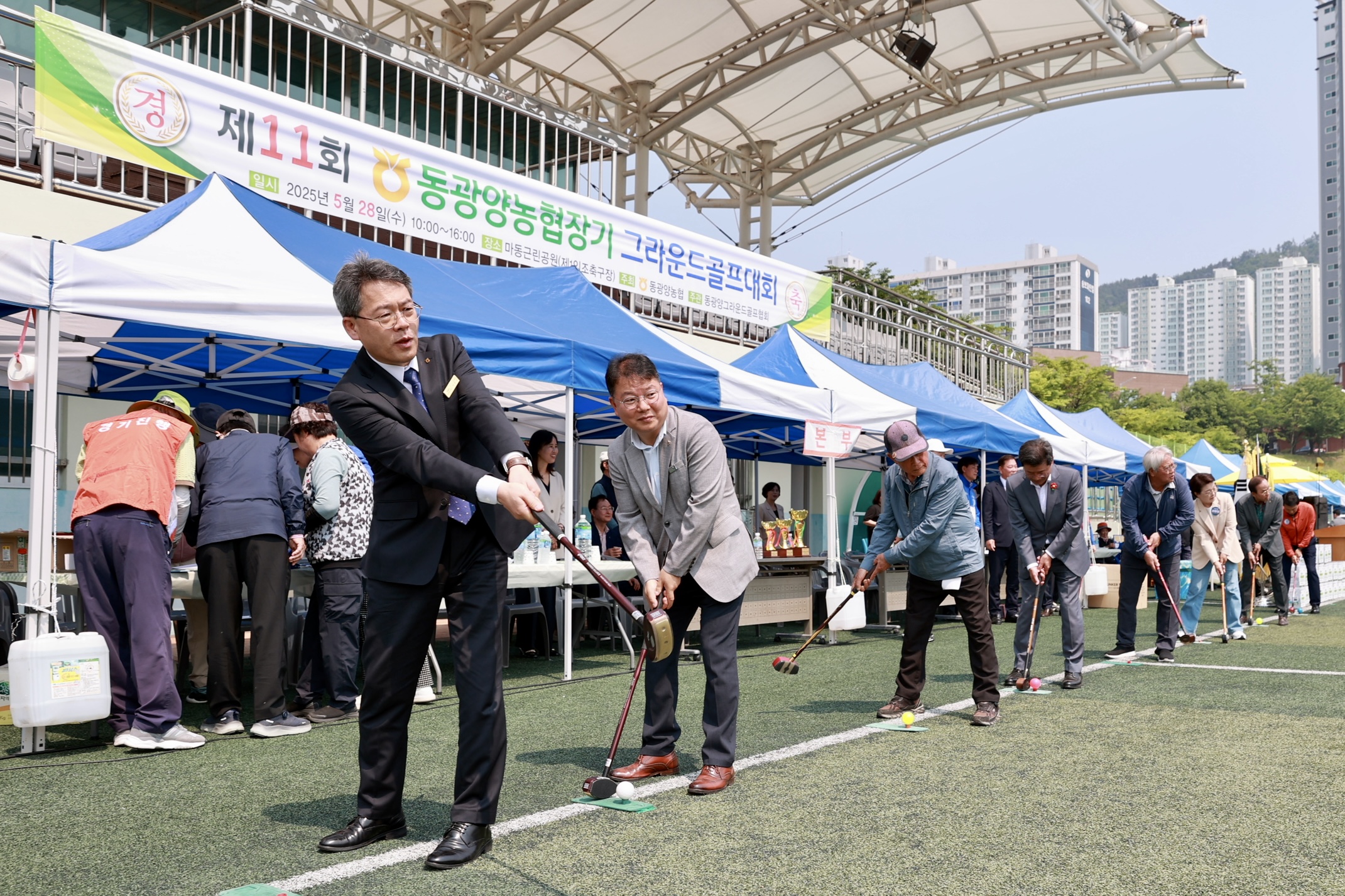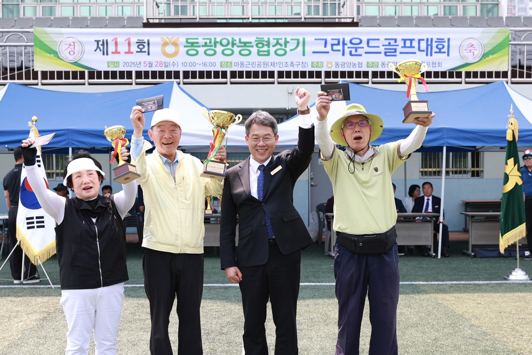 동광양농협(조합장 이돈성)은 28일 광양시 마동근린체육공원 축구장에서 ‘제11회 동광양농협장기 그라운드골프대회’를 성황리에 개최했다.