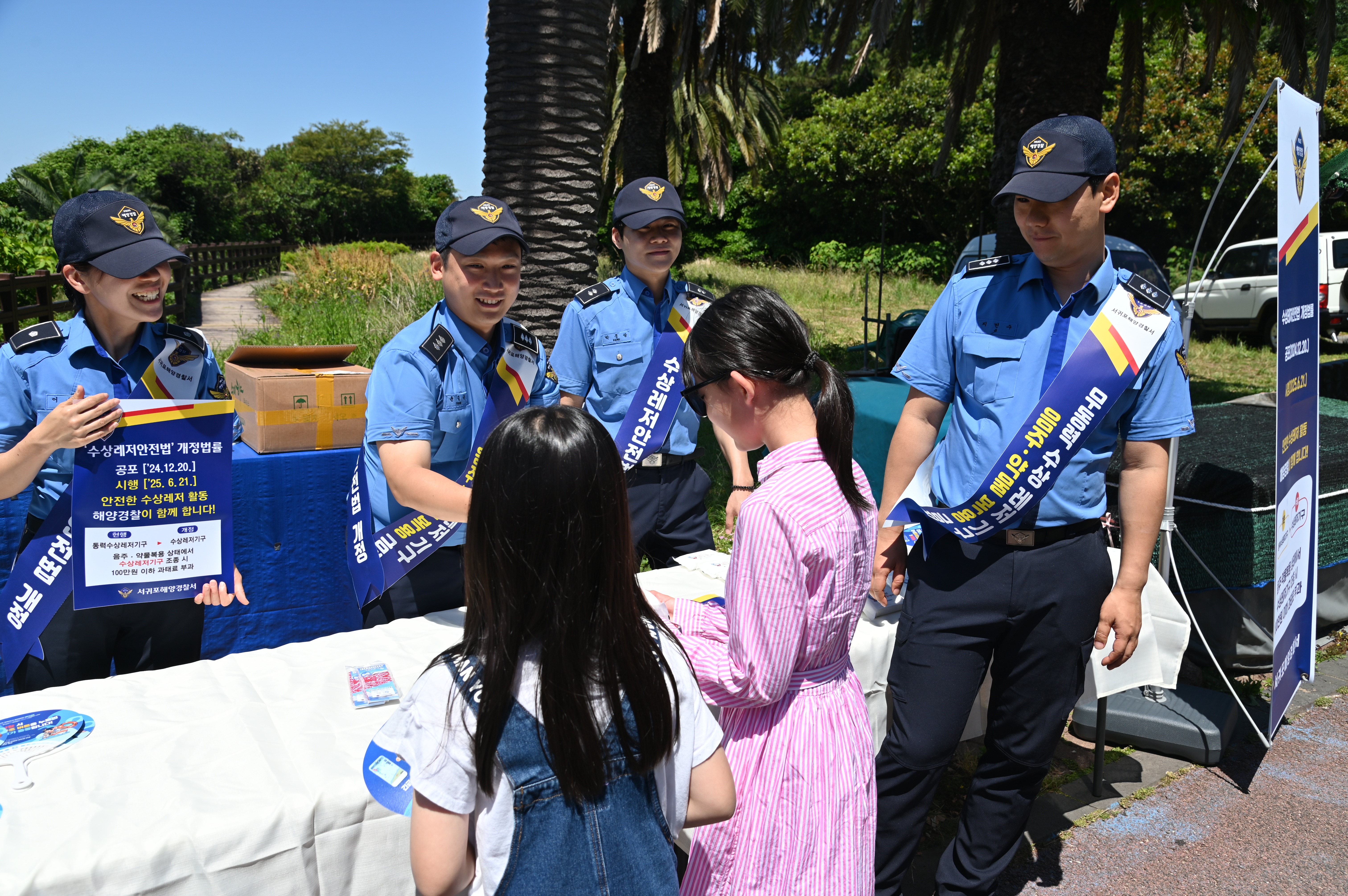 서귀포해양경찰서(서장 김서구)는 6월 21일 시행되는 「수상레저안전법」개정 법률에 대한 내용을 국민에게 널리 알리고, 안전한 수상레저 문화를 정착시키기 위해 오늘(5일) 중문해수욕장에서 홍보 캠페인을 전개했다고 밝혔다.