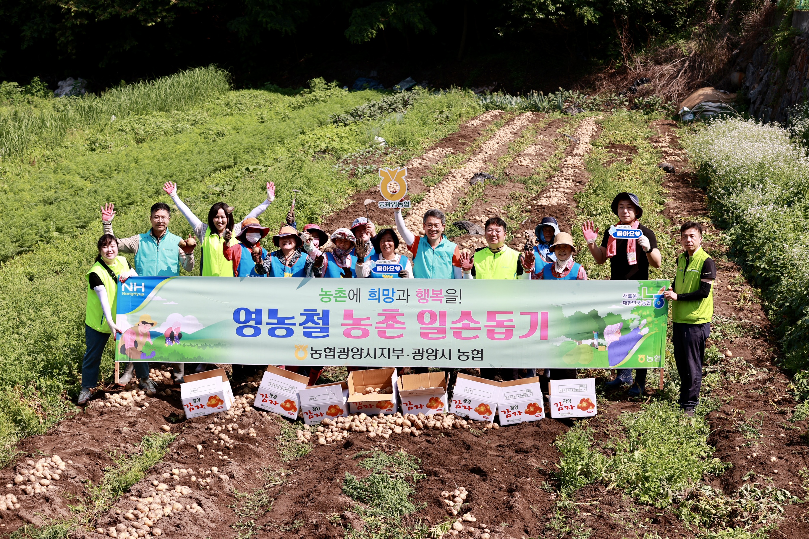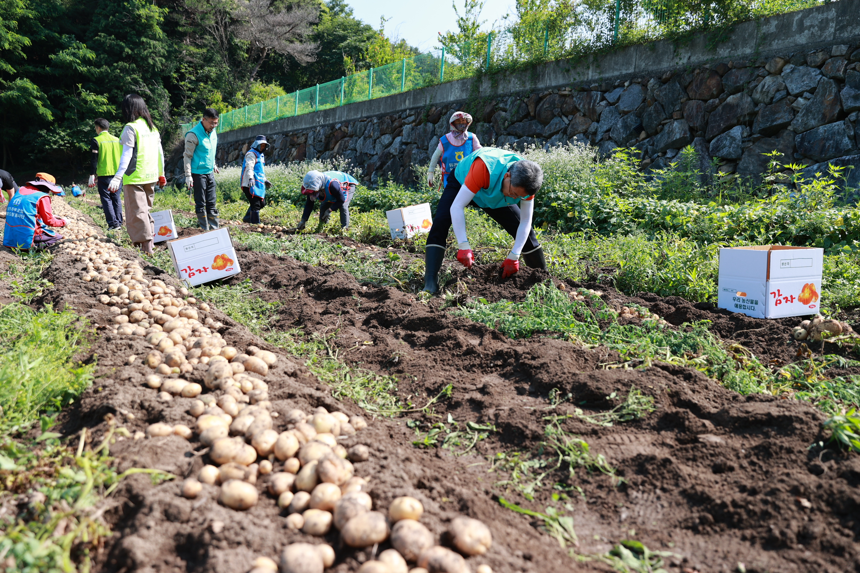 수확 당일에는 이른 아침 7시부터 농가주부모임 회원들과 동광양농협 임직원, 농협중앙회 광양시지부 직원 등 30여 명이 함께 현장에 모여 감자 줄기 제거, 비닐 수거, 호미 작업, 포장까지 역할을 나누어 구슬땀을 흘렸다.