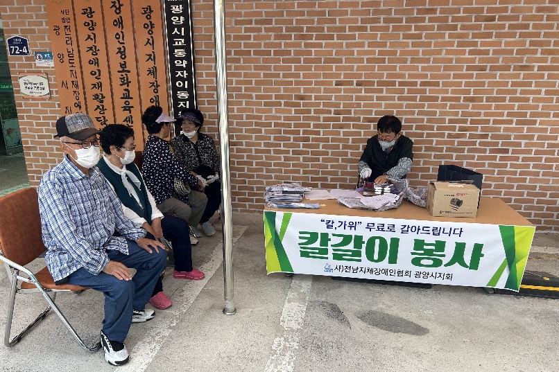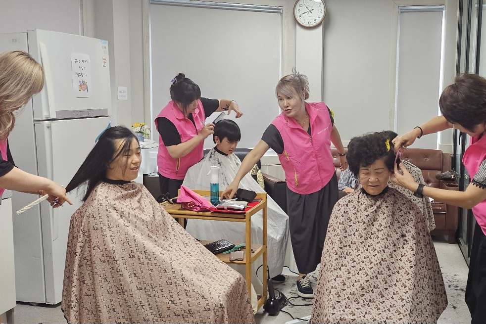 또한 사)대한미용사회 광양시지부 원장들은 회원들의 머리를 예쁘게 다듬어 주었고, 지회 앞마당에서는 푸드트럭에서 시원한 음료와 커피콩빵을 제공하고 칼갈이 봉사도 함께 진행하였다.