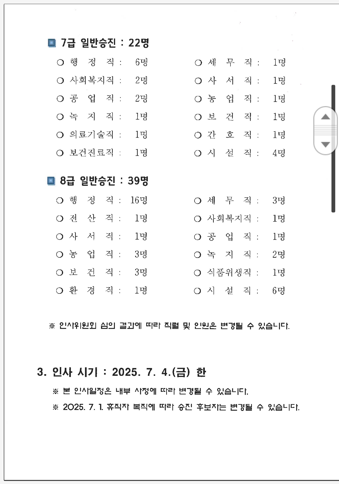 광양시 2025년 하반기 승진정기인사 예고입니다.
