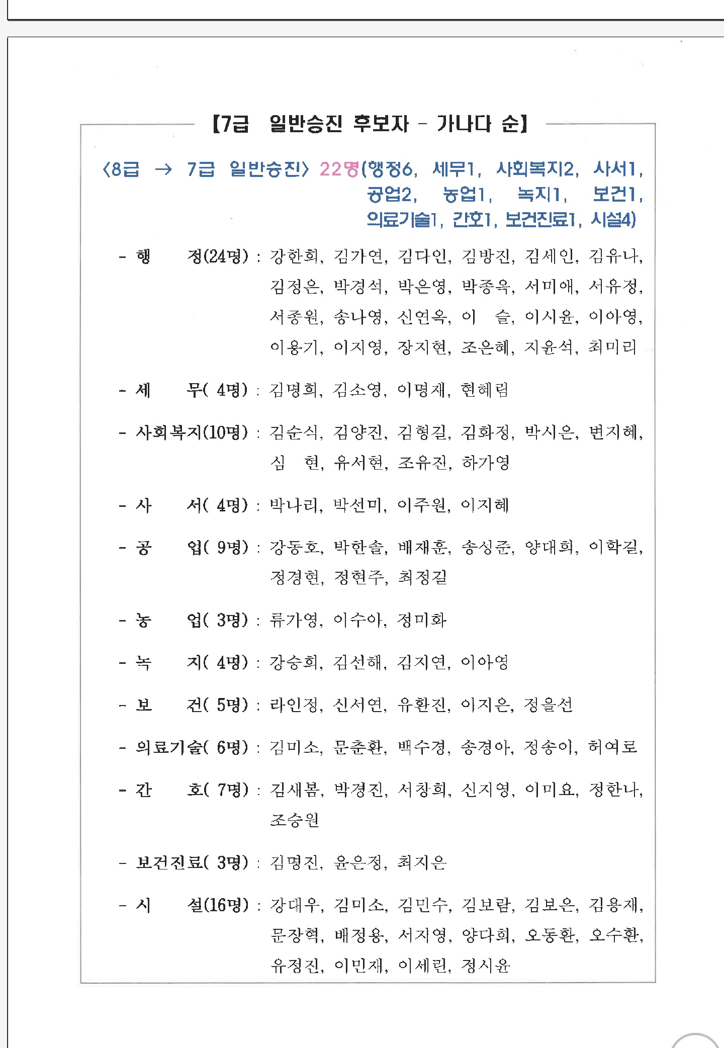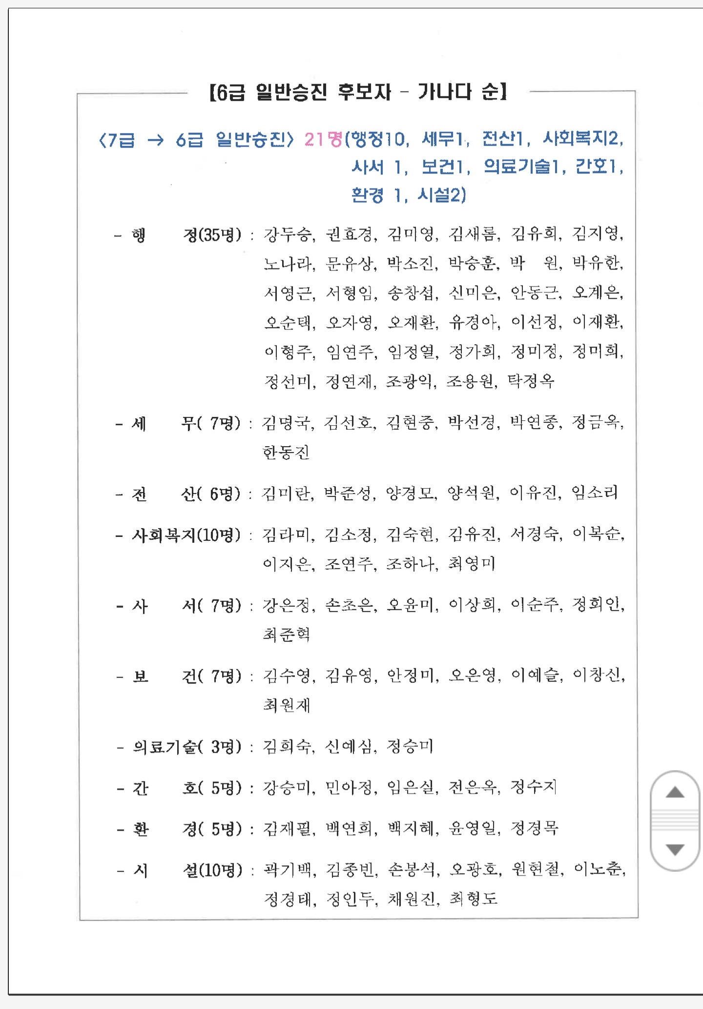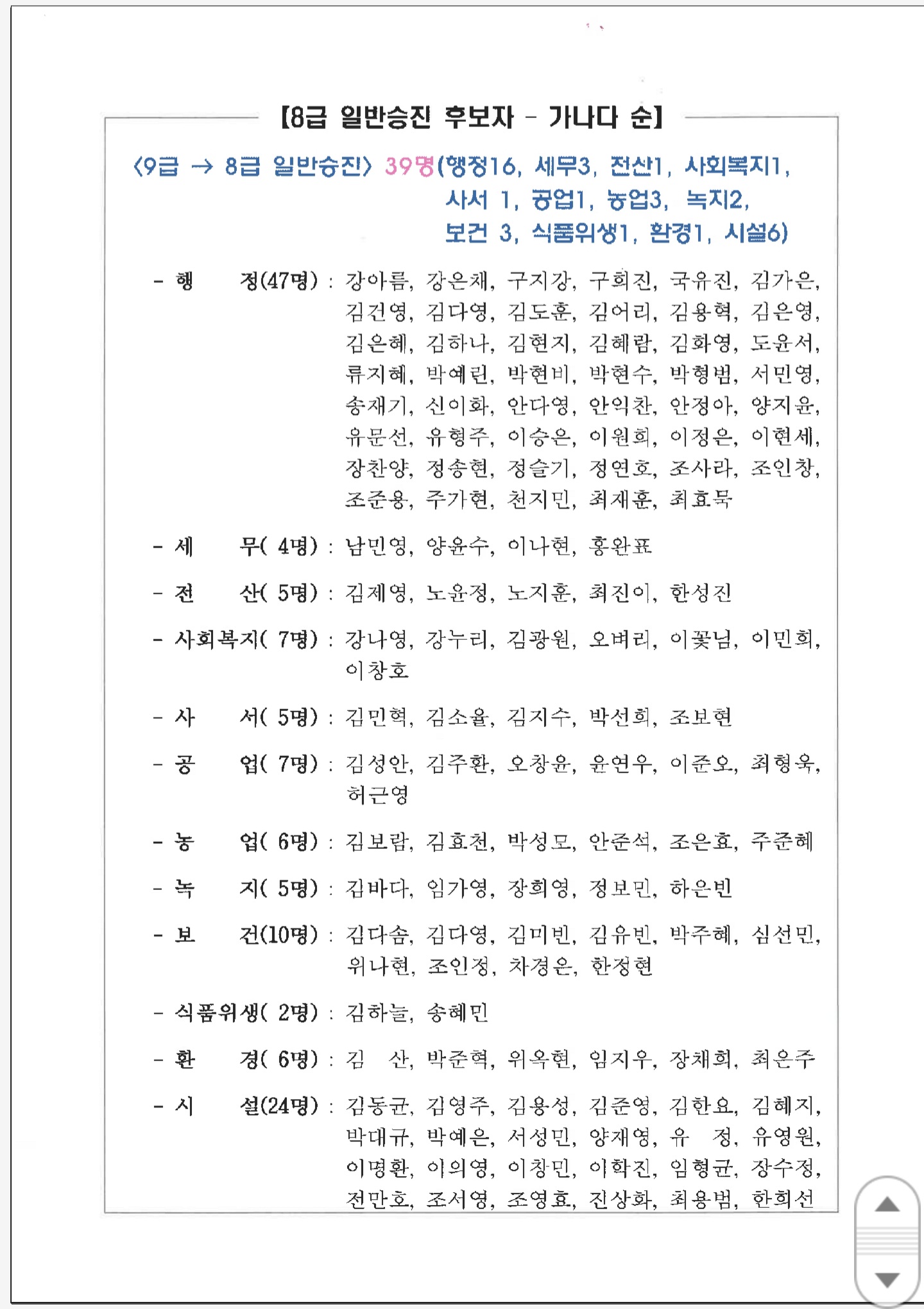 광양시 2025년 하반기 정기인사 '승진임용 대상자 명단'입니다. 총: 87명 4급: 1명 5급: 4명 6급...