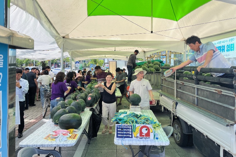 이번 행사는 지역 농업인이 직접 재배한 농산물을 유통 과정을 거치지 않고 소비자에게 제공하는 직거래 장터 형식으로 운영된다. 현장에서는 진월면에서 출하된 흑수박과 일반수박이 시중가보다 저렴하게 판매되며, 수박 시식 행사도 함께 마련돼 시민들이 직접 맛을 보고 구매할 수 있다.