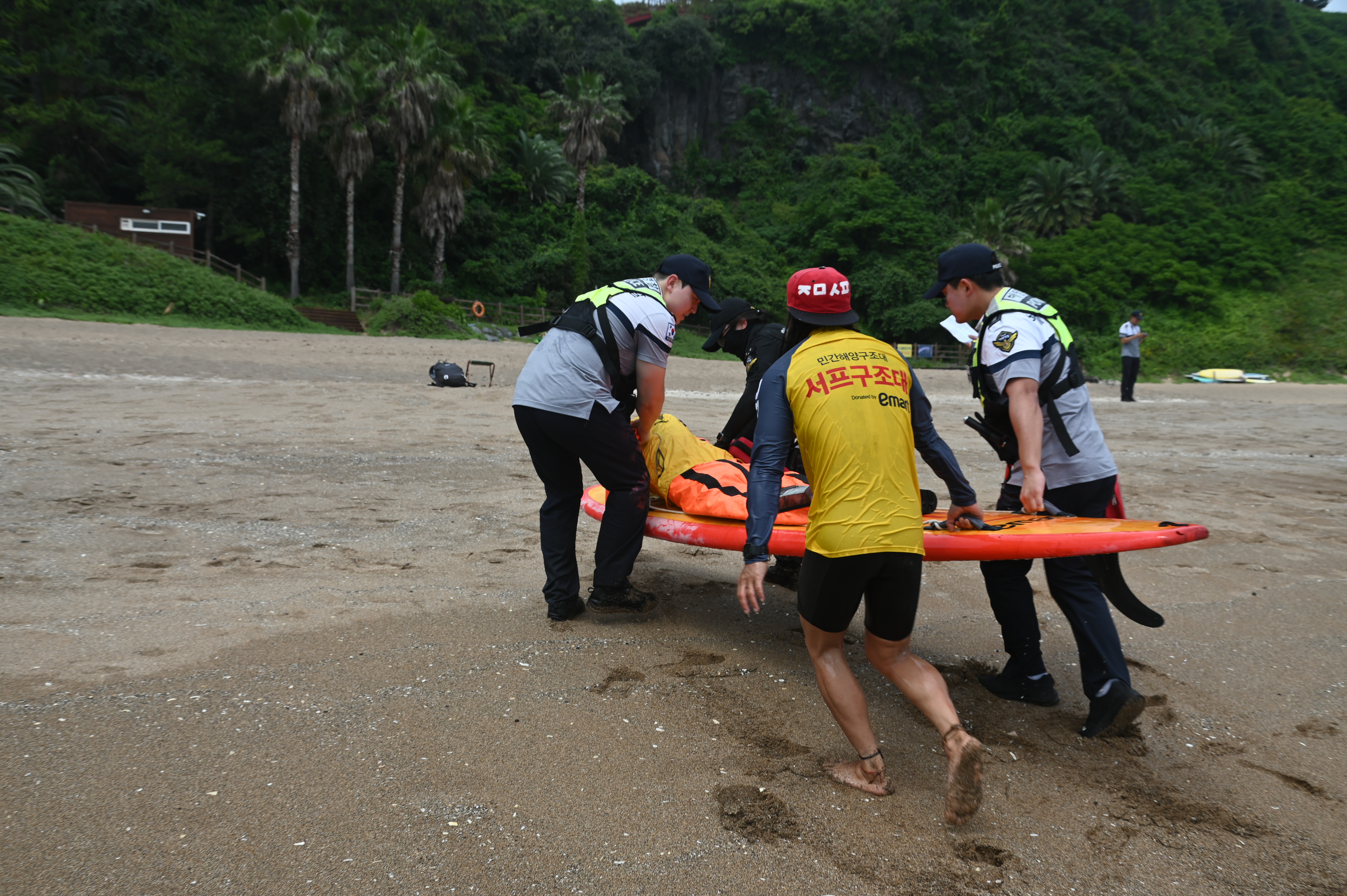 이번 훈련은 서귀포해경을 주관으로 지리·해역적 특성을 잘 아는 수상레저 사업장(4개 업체)과 민간서프구조대 등 30여명이 민·관, 구조협력 체계를 구축하여 연안사고 대응력을 강화하는데 목적을 두었다.