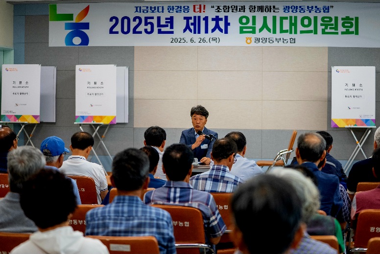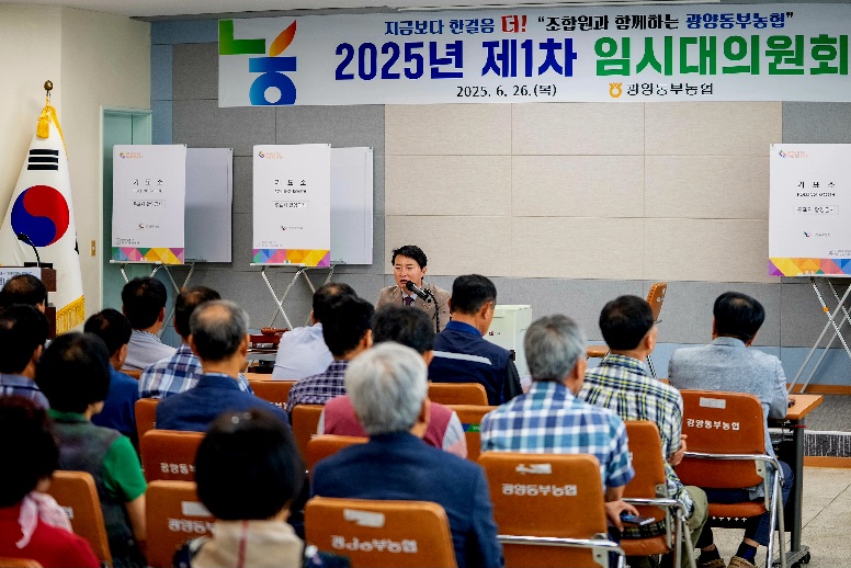 광양동부농협(조합장 문정태)은 지난 26일 본점 2층 대회의실에서 2025년 제1차 임시대의원회를 개최했다.