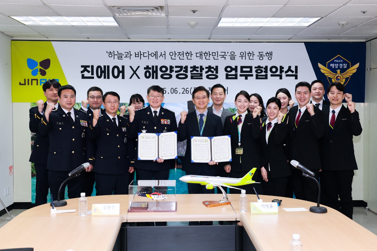 해양경찰청(청장 김용진)과 진에어(대표이사 박병률)는 바다에서 하늘까지 안전한 대한민국을 만들기 위한 업무협약을 체결했다고 26일 밝혔다.