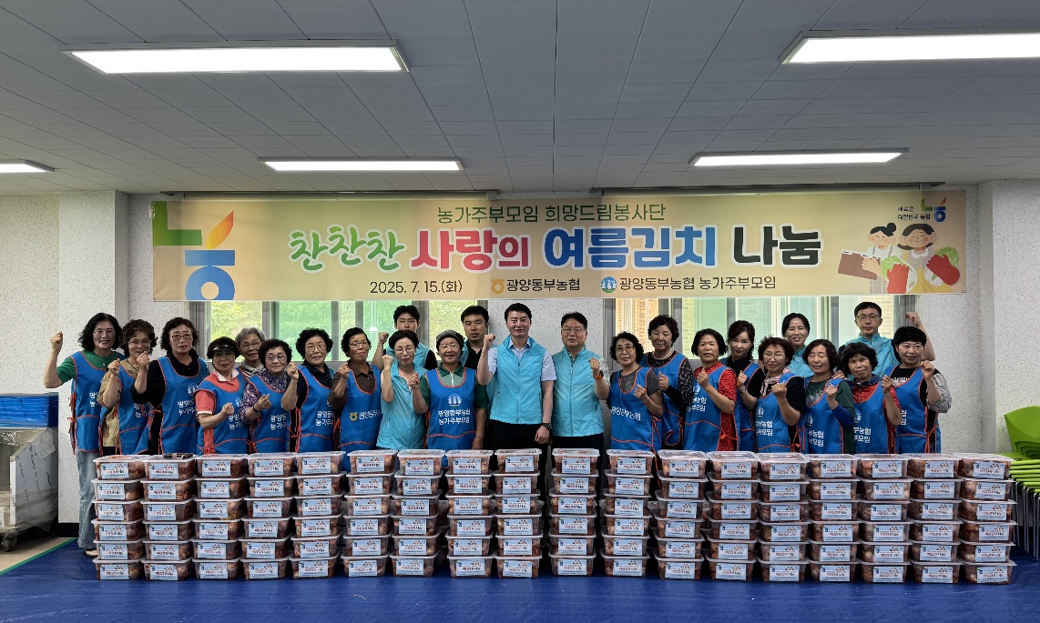 광양동부농협(조합장 문정태)과 농가주부모임은 조합원과 지역민들이 무더운 여름을 함께 이겨내기 위한 일환으로 ‘찬찬찬 사랑의 여름김치 나눔행사’를 펼쳤다.