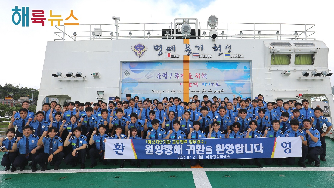 해양경찰교육원(원장 한상철)은 21일 오전 실습함인 바다로함이 25일간의 말레이시아 원양항해 실습을 마치고 여수 신항 부두로 입항했다고 밝혔다.