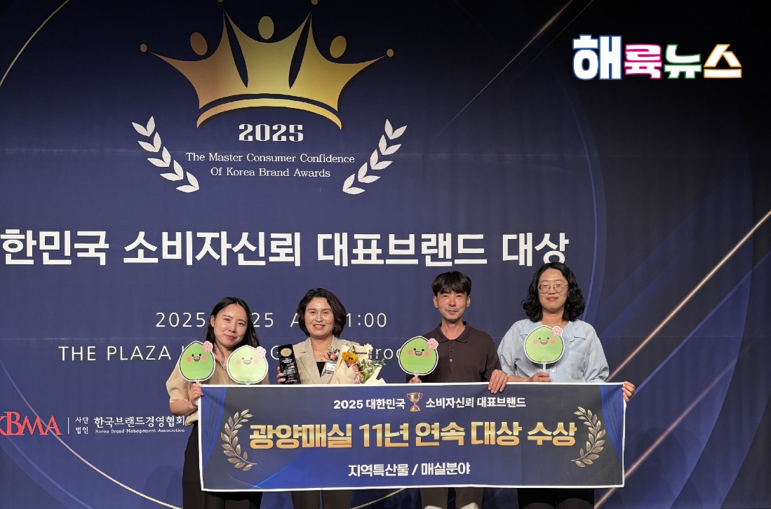광양시(시장 정인화)는 ‘빛그린 광양 매실’이 「2025 대한민국 소비자 신뢰 대표브랜드 대상」 지역특산물/매실 부문에서 대상을 수상하며, 2015년부터 2025년까지 11년 연속 수상의 쾌거를 이뤘다고 25일 밝혔다.
