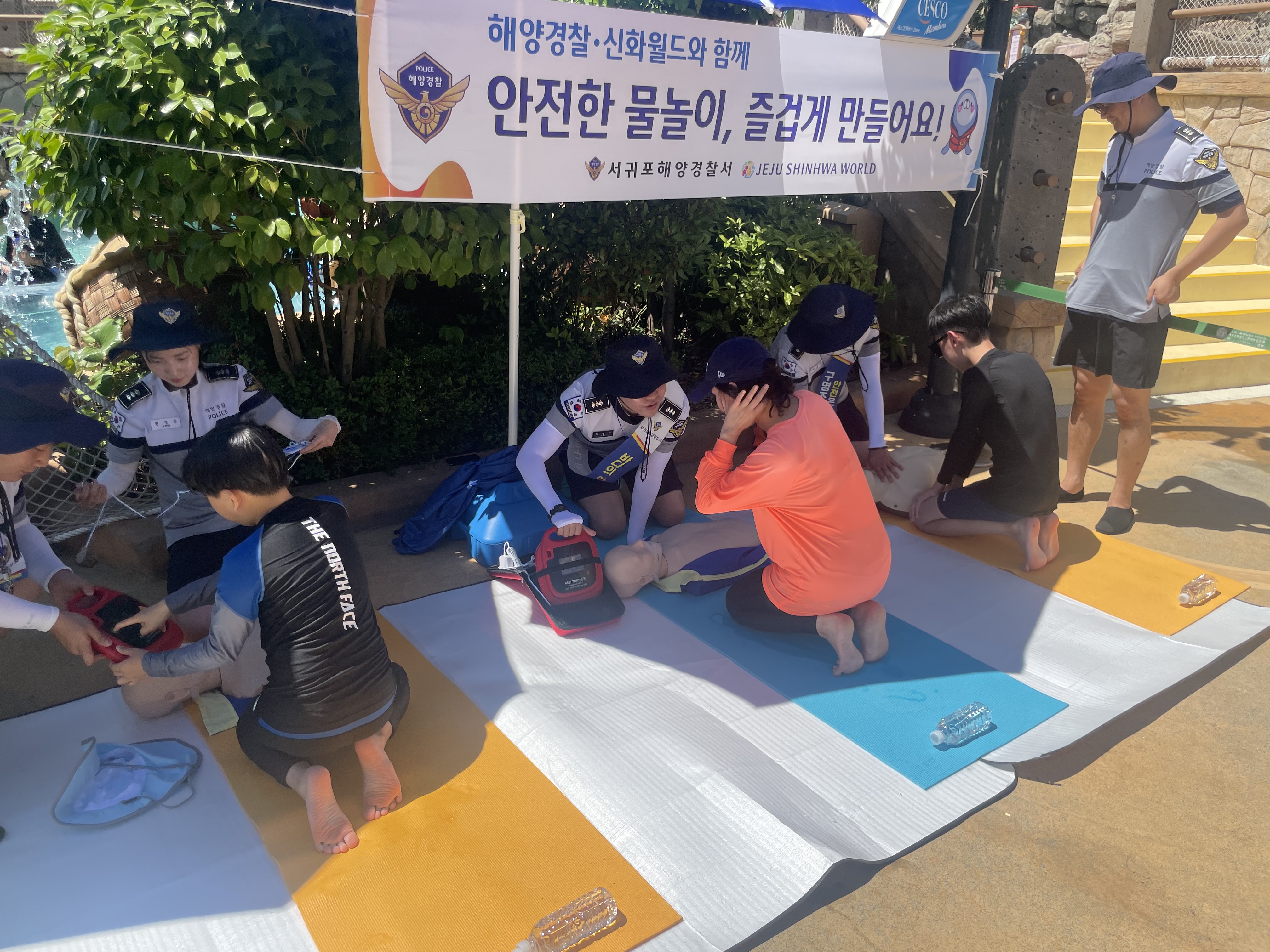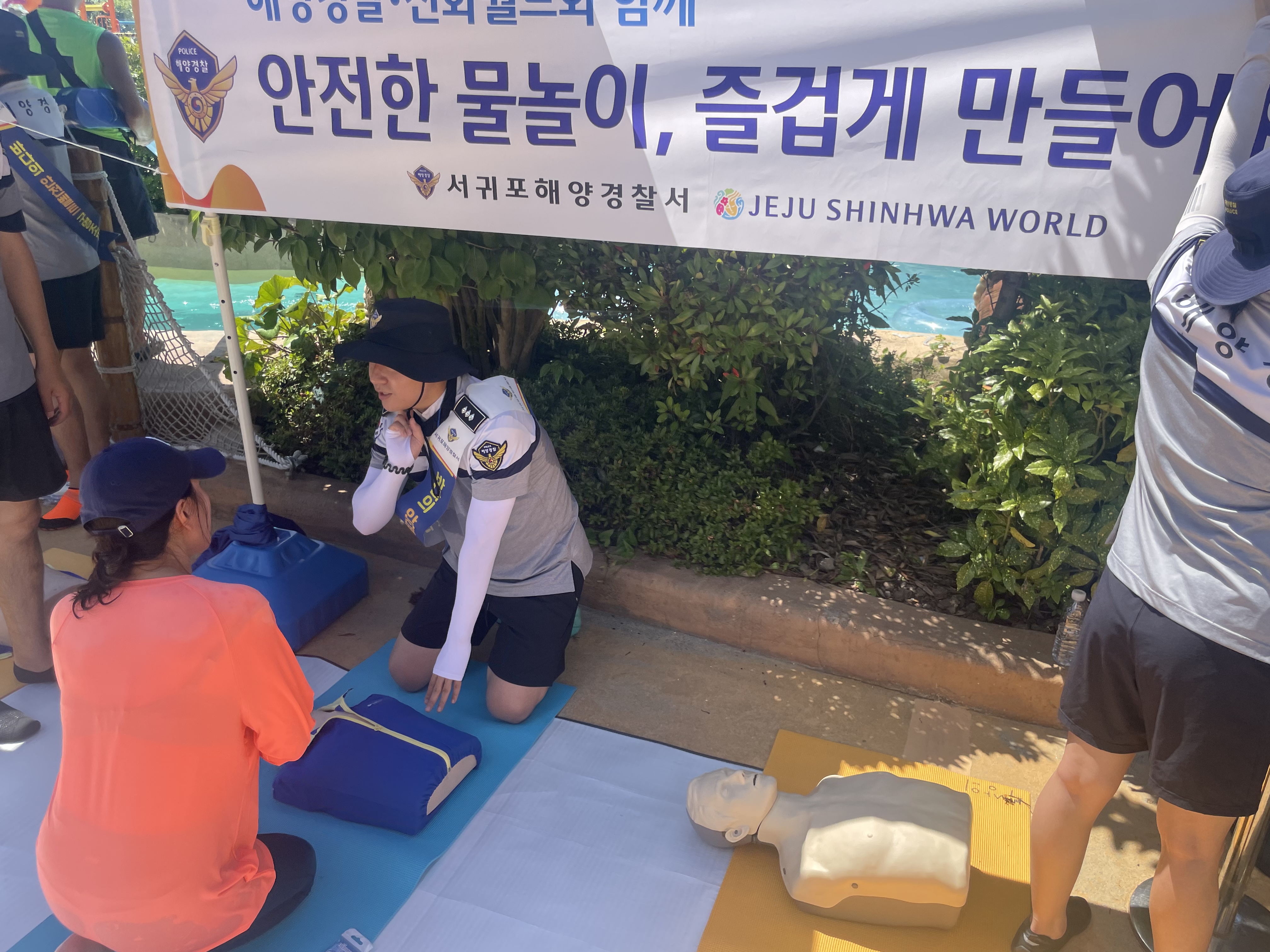 이번 캠페인은 서귀포해양경찰서와 제주 신화워터파크가 협력해 진행했으며, 물놀이를 즐기러 온 학생과 방문객을 대상으로 심폐소생술, 생존수영 등 실전 교육과 함께 안전 상식 퀴즈 형식으로 알아보는 체험형 프로그램으로 구성돼 참여자들의 큰 호응을 얻었다. 호응에 힘입어 8월 1일(금)과 8일(금)에 추가적으로 물놀이 안전교실을 운영할 예정이다.