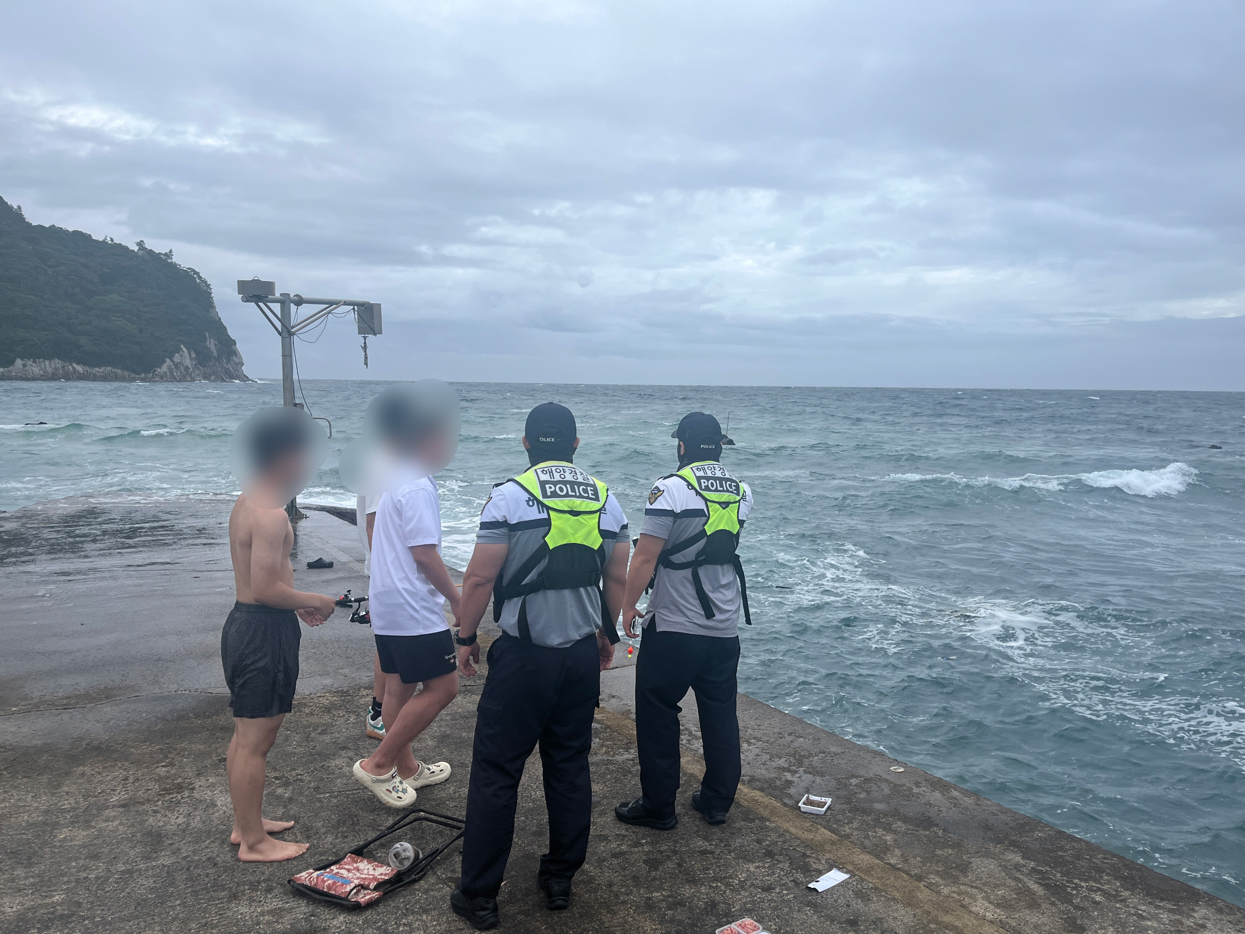 또한, 여름철 행락객들의 연안 안전사고 예방을 위해 어제(24일) 서귀포 지역에 이어 오늘(25일) 제주 지역에 연안안전위험예보제 ‘주의’ 단계를 발령하며 주의를 당부하는 한편, 갯바위·방파제 등 위험구역 순찰을 강화하는 등 전 구조세력들이 사고 대비 즉응태세를 유지하고 있다.