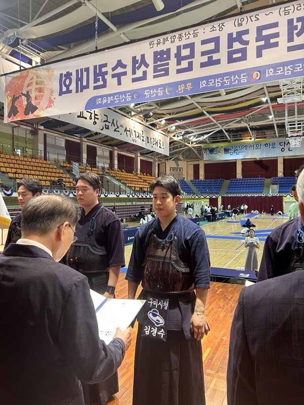 4단부에 출전한 구미시청 김경수 선수는 올해 입단하여, 2025 동계 전국실업검도대회에 구미시청 검도팀이 단체전 “우승”하는데 전성기 활약으로 성공적인 복귀를 보여주었고, 2025 SBS 전국검도왕대회에서 일반부 준우승을 차지하기도 하였다. 매 대회에 입상권에 물망 오른 김경수(4단) 선수는 이번 회장기 전국검도단별대회에서도 두각을 보였다. 60명이 참가하는 4단부 경기에 예선전 김형진(대전대) 선수를 가볍게 이기며, 순조로운 출발을 하였다.